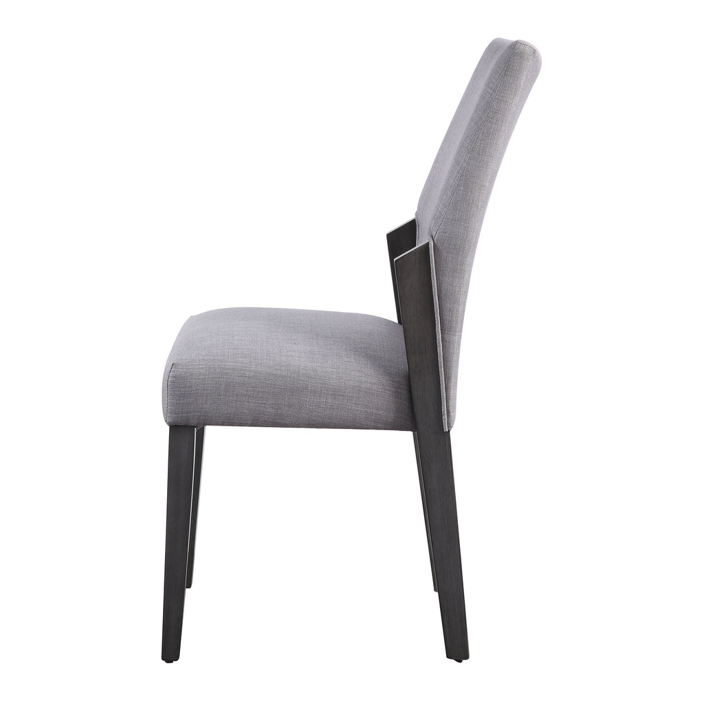 Elevate your dining experience with these modern side chairs, where chic dove grey fabric upholstery effortlessly complements any decor, while the padded back and seat ensure optimal comfort for you and your guests to enjoy meals in utmost relaxation. All supported by sleek wood tapered legs that contribute to the chairs' contemporary aesthetic.