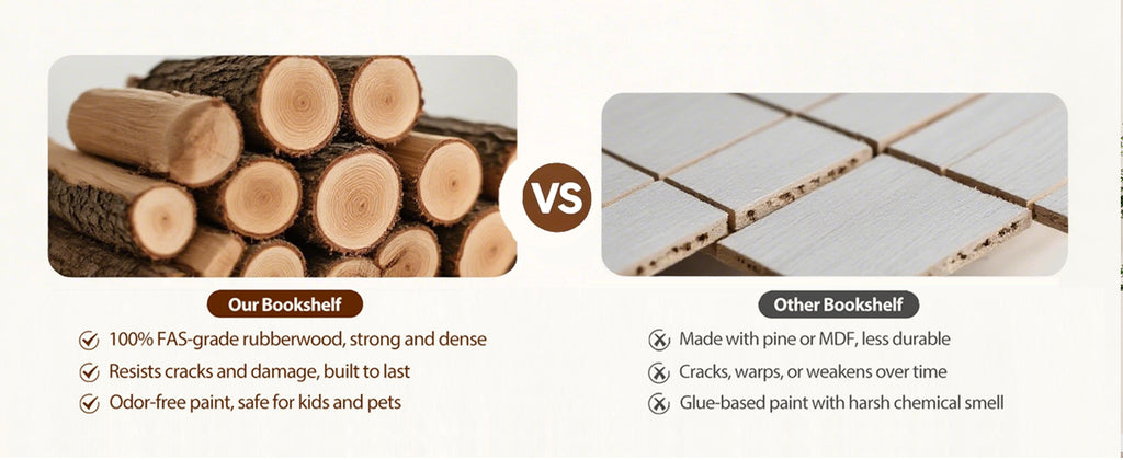 • 100% Natural Rubberwood - Built to Last: Our rotating bookshelf, crafted from eco-friendly and sturdy 100% natural rubber wood, has every inch of the wood carefully selected and polished, revealing the unique warm texture and delicate grain of natural rubber wood, offering you a dual sensory experience of sight and touch. Its modern white, walnut, and natural wood colors are not only aesthetically pleasing but also highly sturdy, adding a touch of elegance and beauty to your home