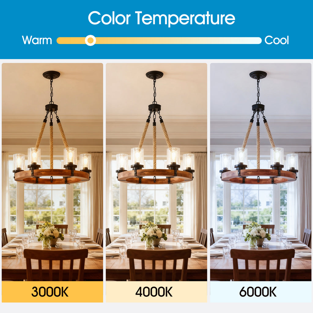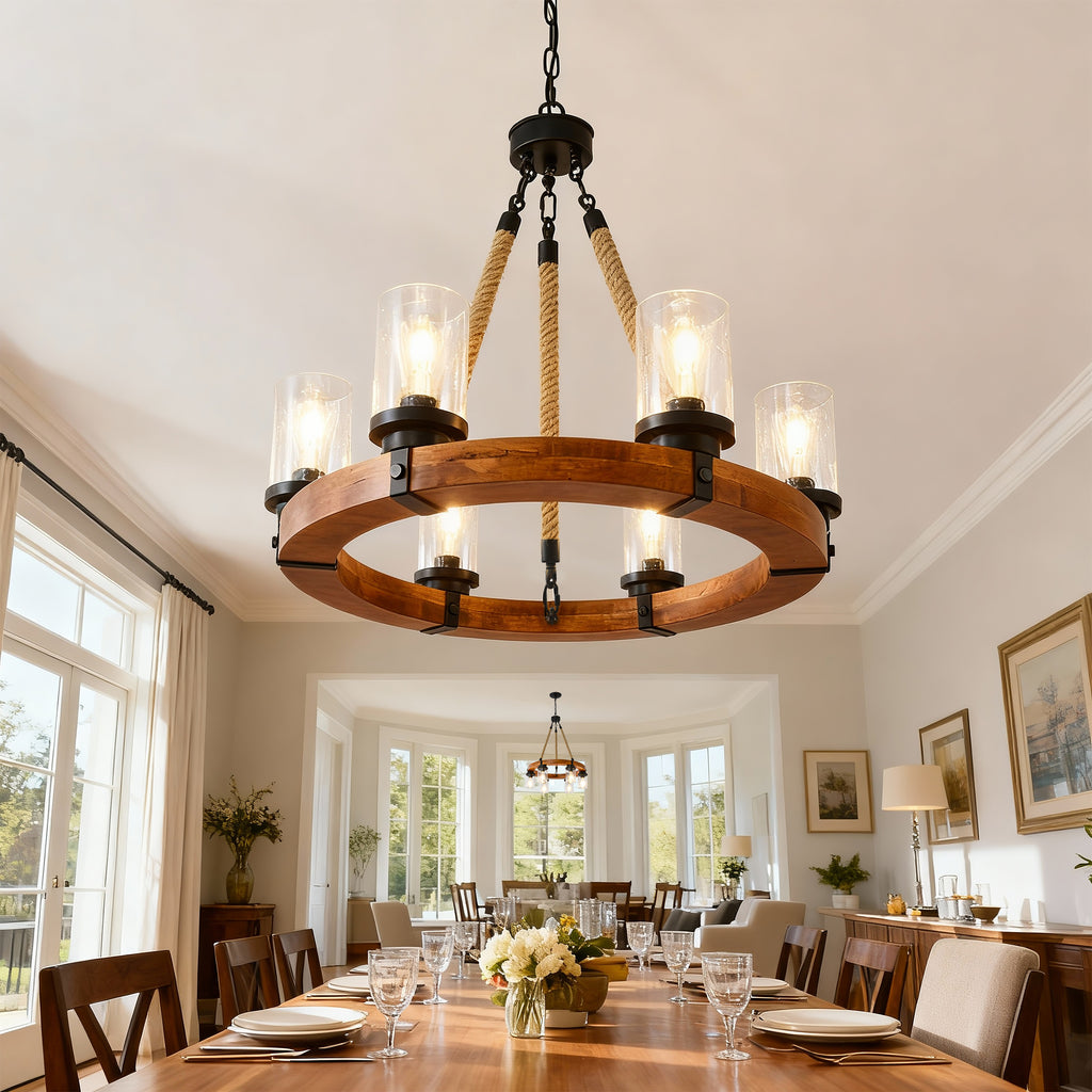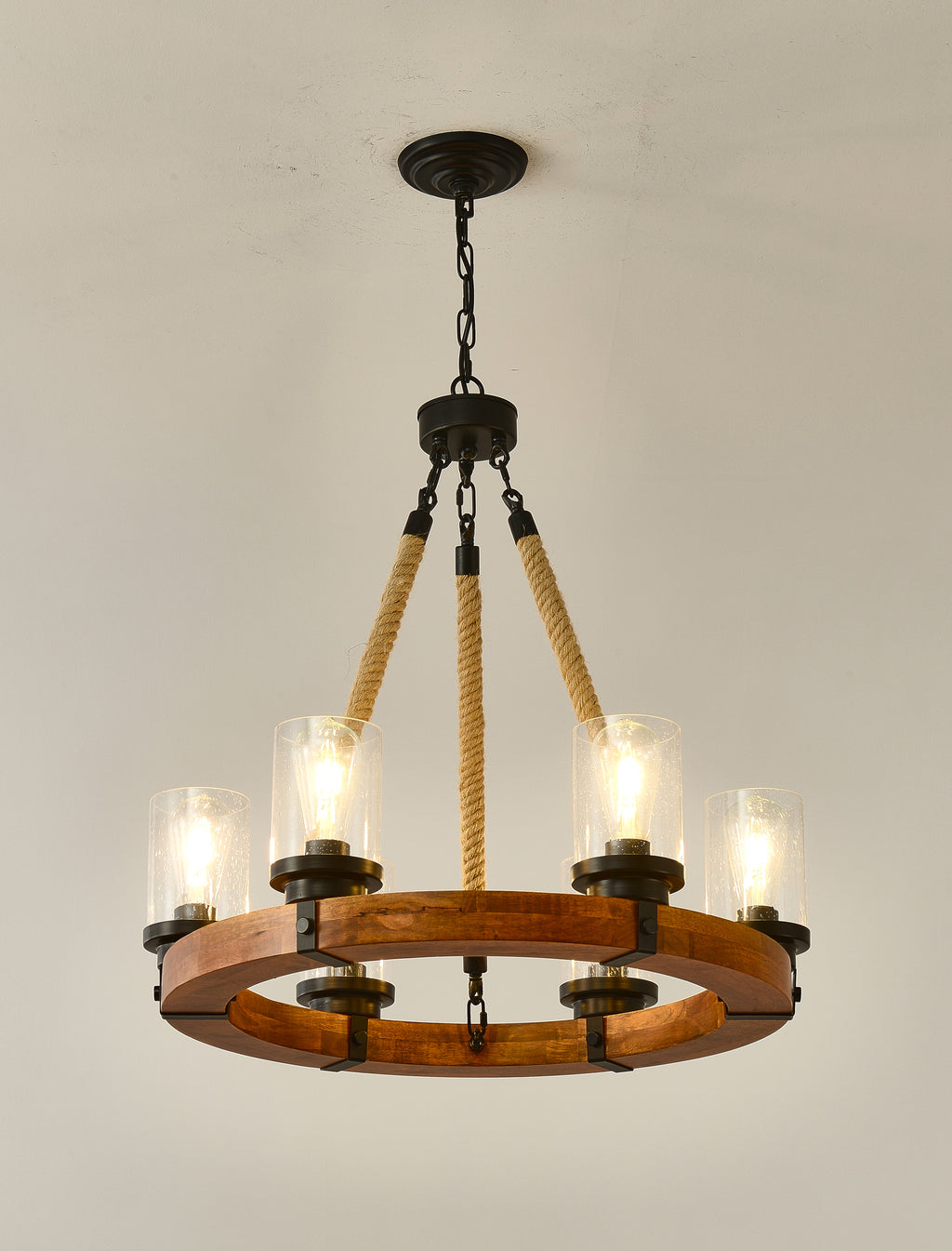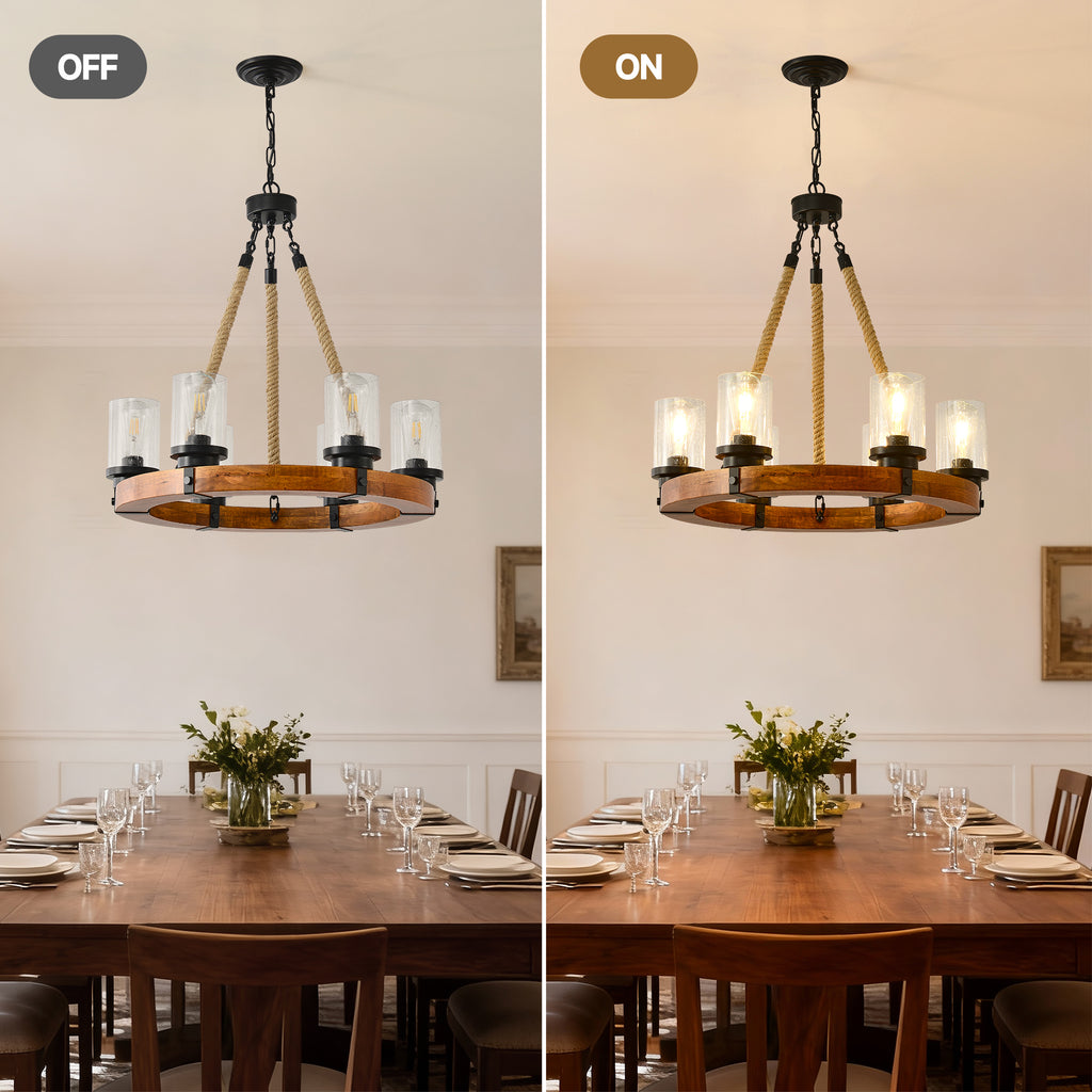 • 6-LIGHT FARMHOUSE RUSTIC CHANDELIER: The round rustic chandelier comes with 6xE26 bulb base, which is compatible with LED bulbs, incandescent bulbs, CFLs, Edison bulbs, halogen bulbs, etc. Bulbs are not included and need to be purchased separately.6