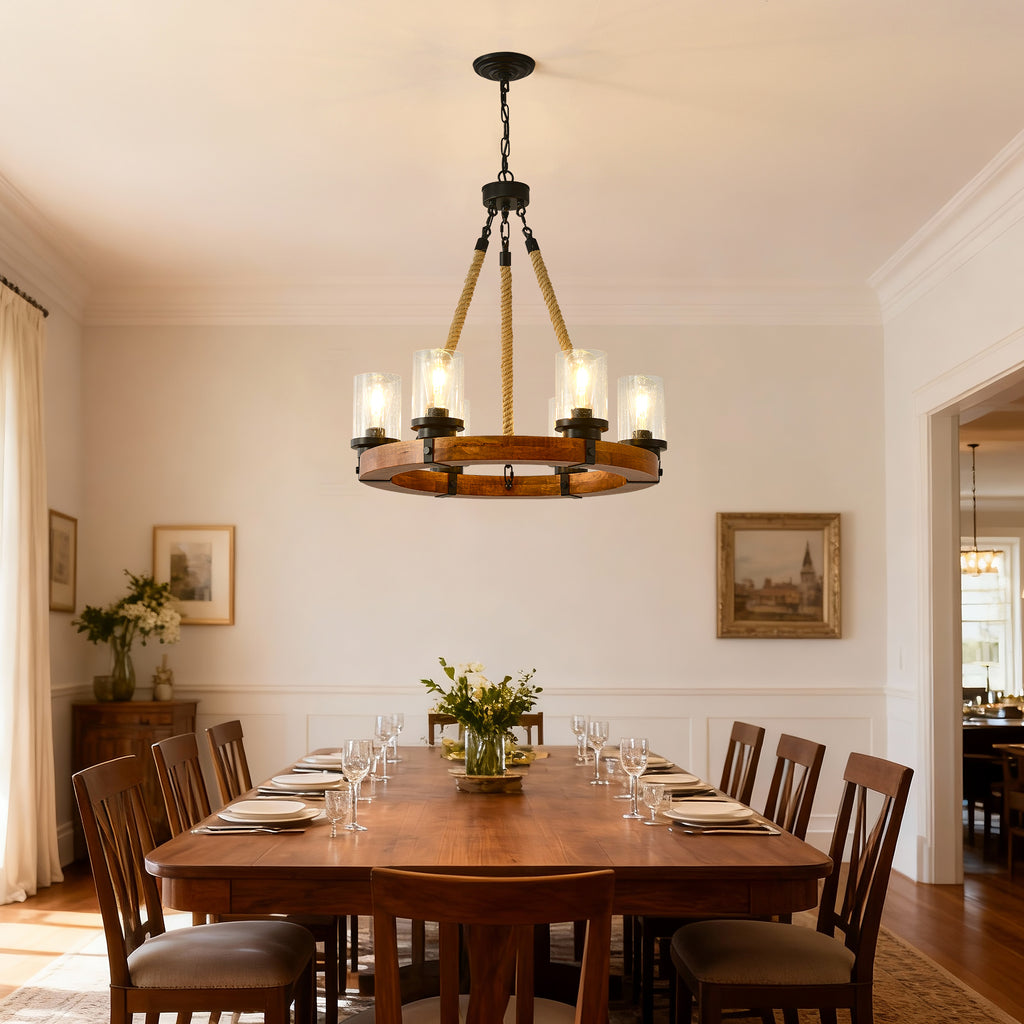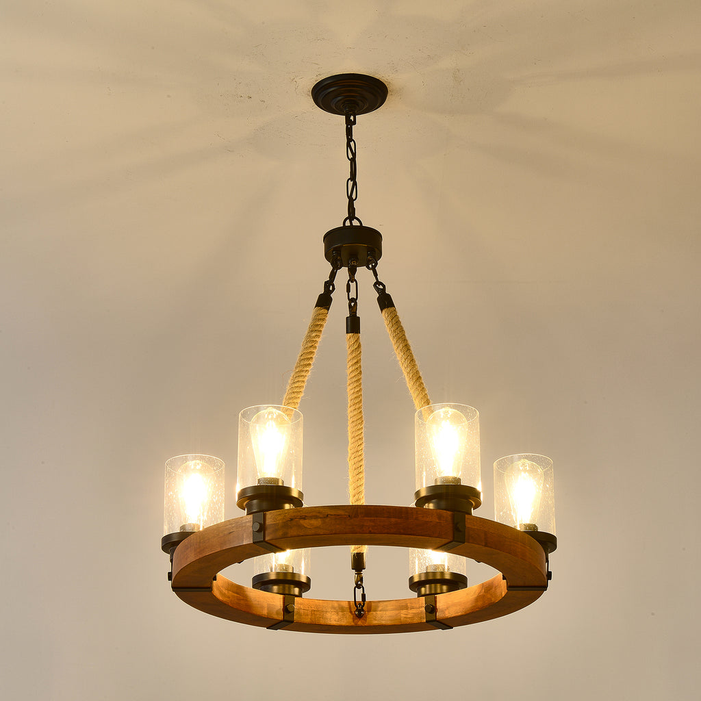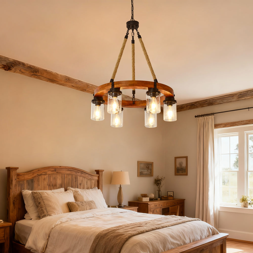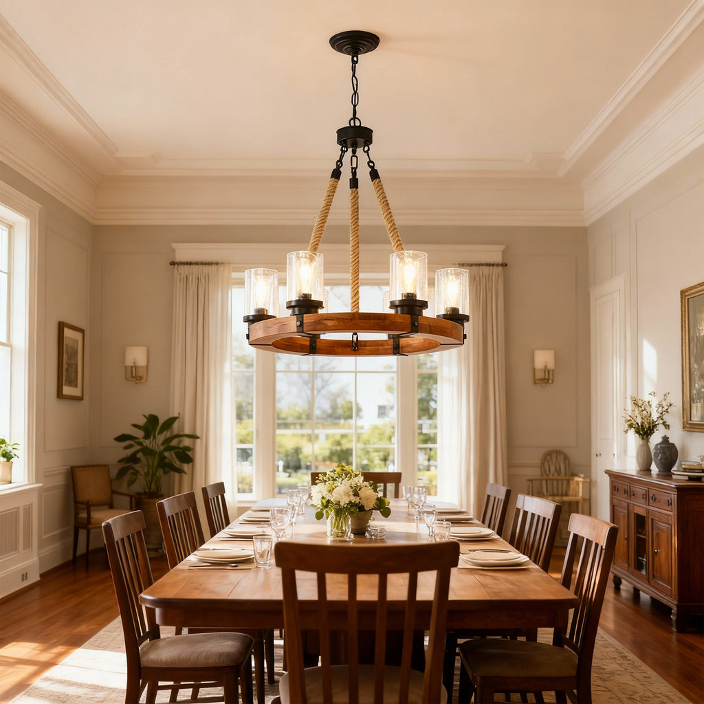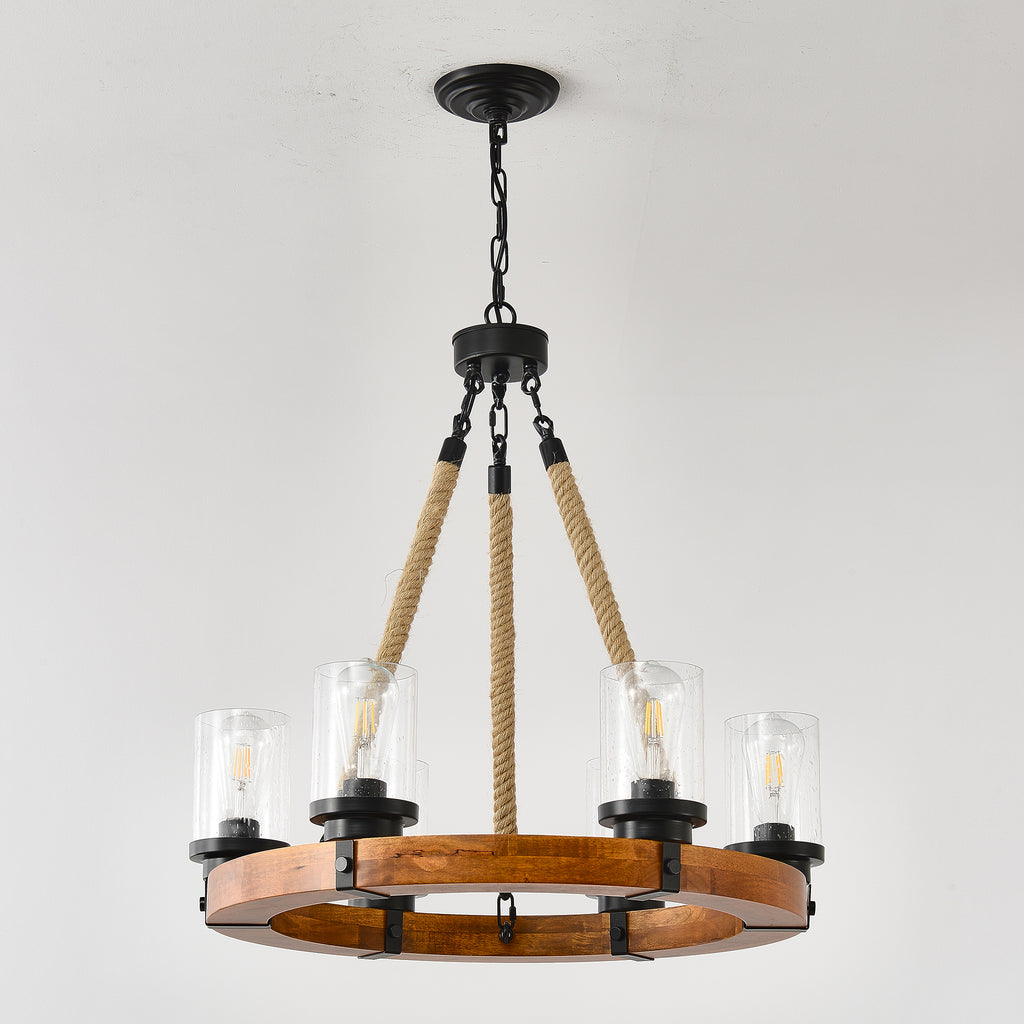 • 6-LIGHT FARMHOUSE RUSTIC CHANDELIER: The round rustic chandelier comes with 6xE26 bulb base, which is compatible with LED bulbs, incandescent bulbs, CFLs, Edison bulbs, halogen bulbs, etc. Bulbs are not included and need to be purchased separately.6