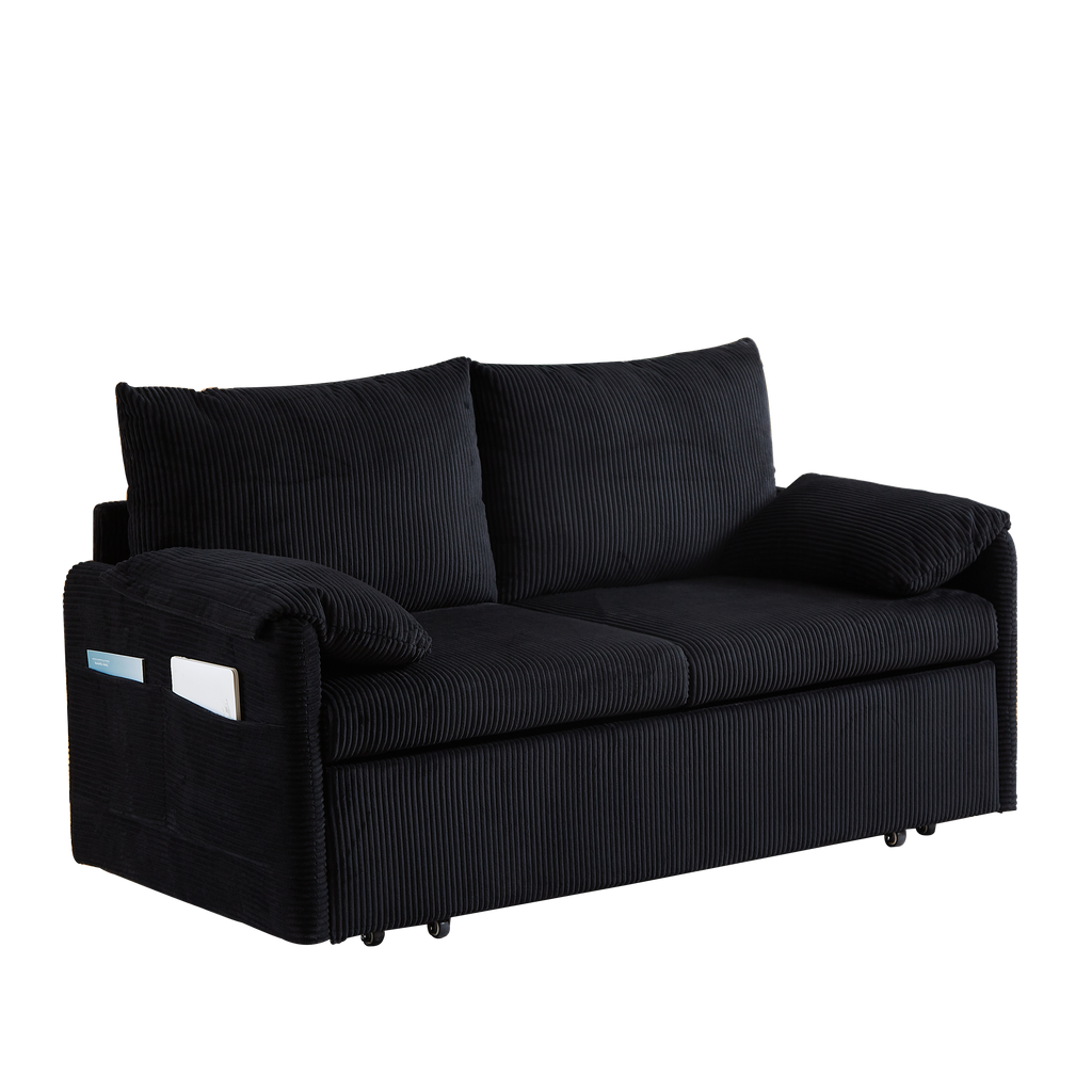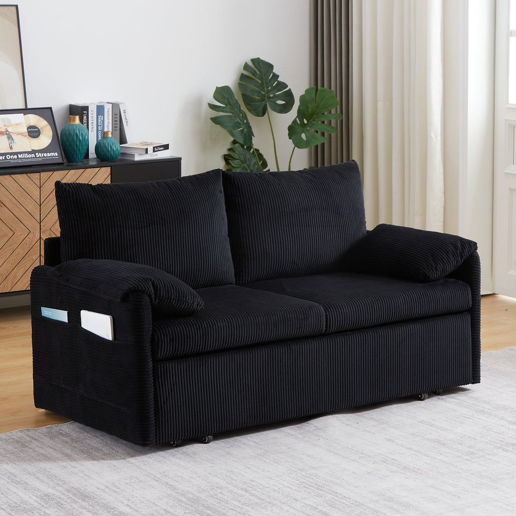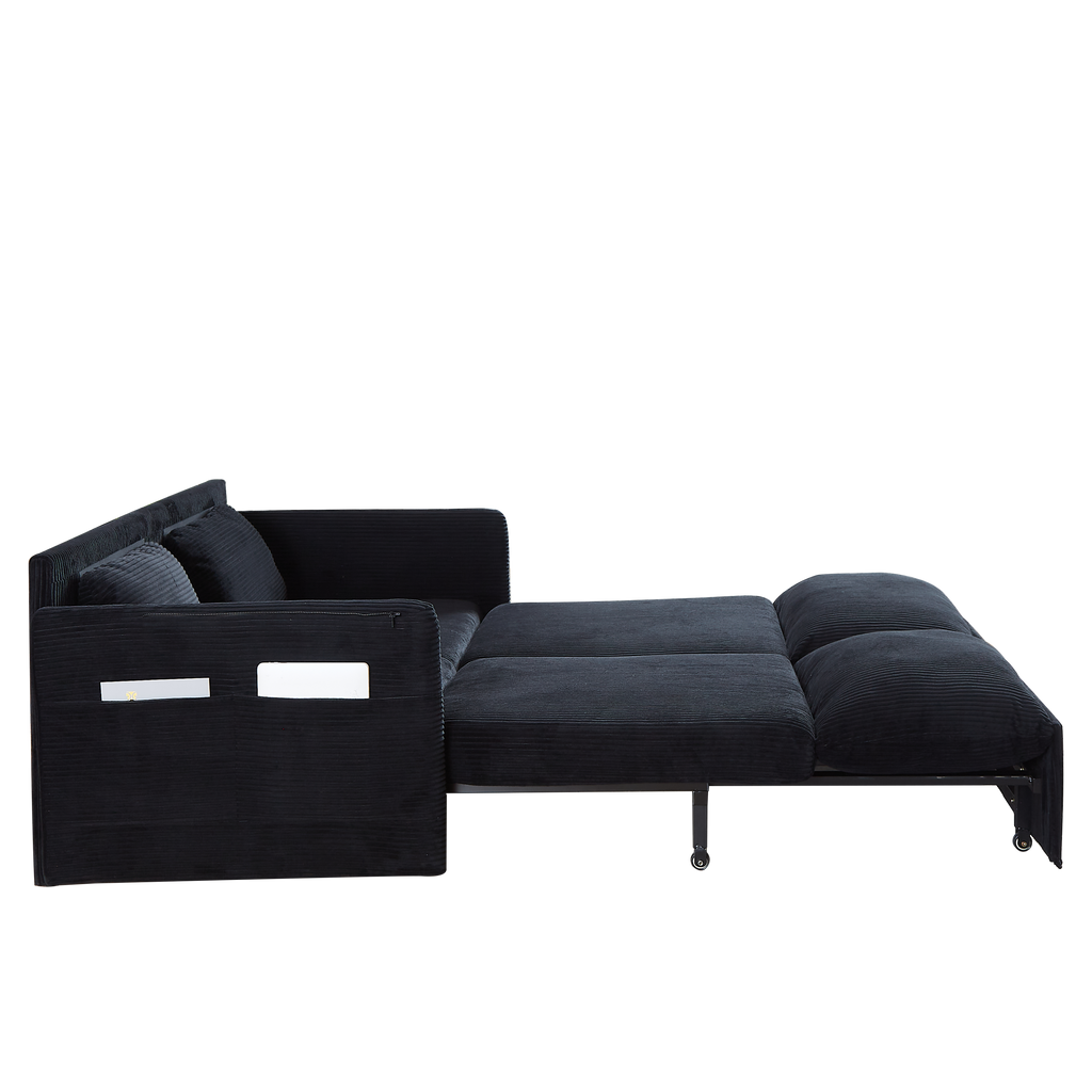 MH'' 64.5 Inch Sleeper Sofa Bed 3-in-1 Adjustable Sleeper with Pullout Bed 2 Pillows and Side Pockets Soft Corduroy Convertible Sleeper Sofa Bed for Living Room Bedroom Apartment Office
