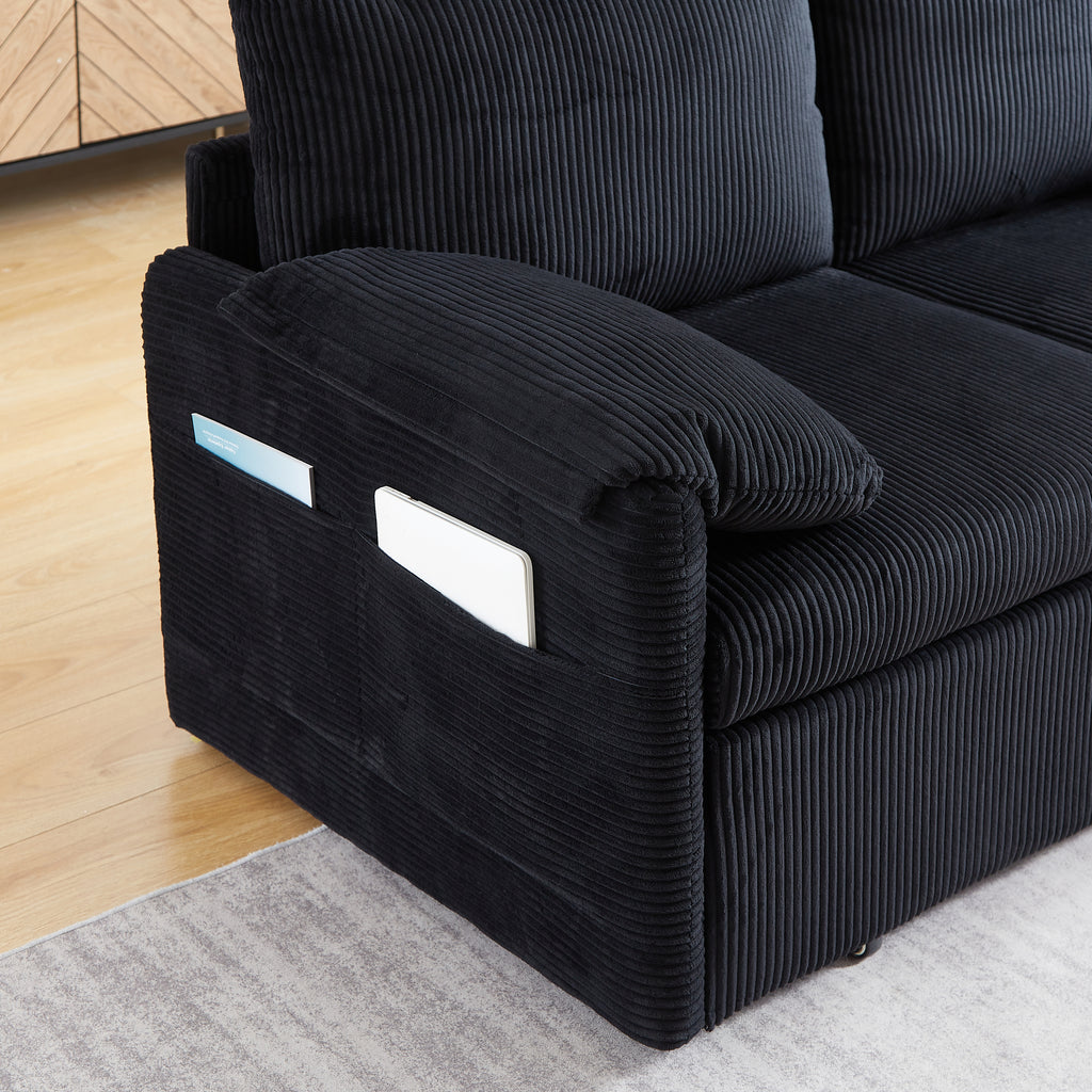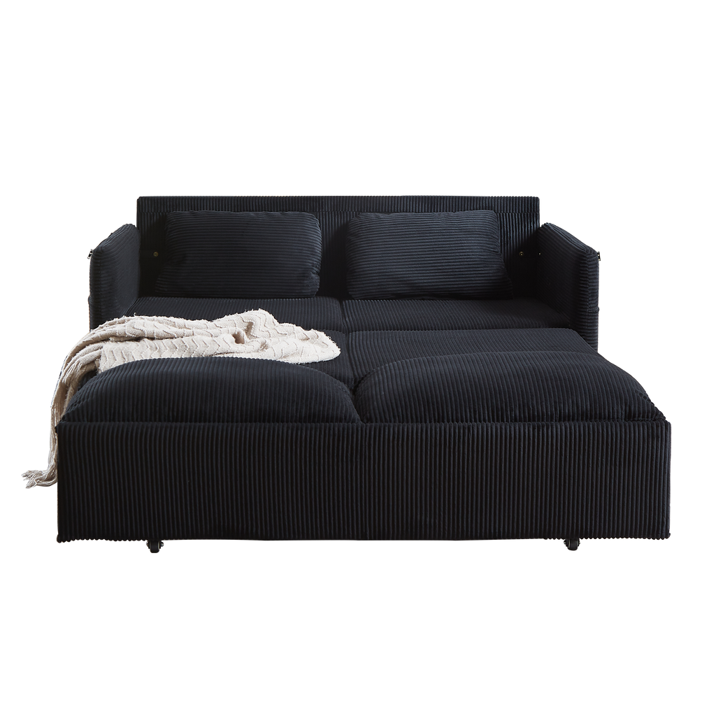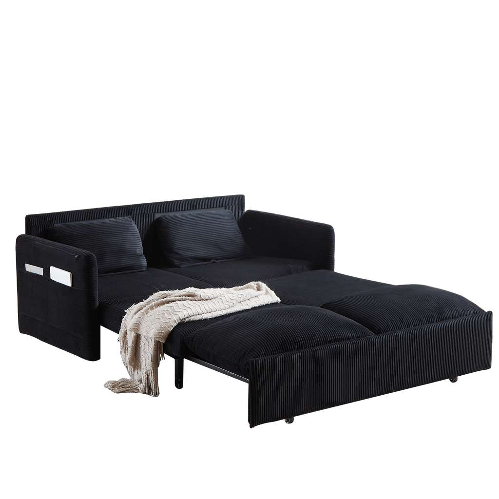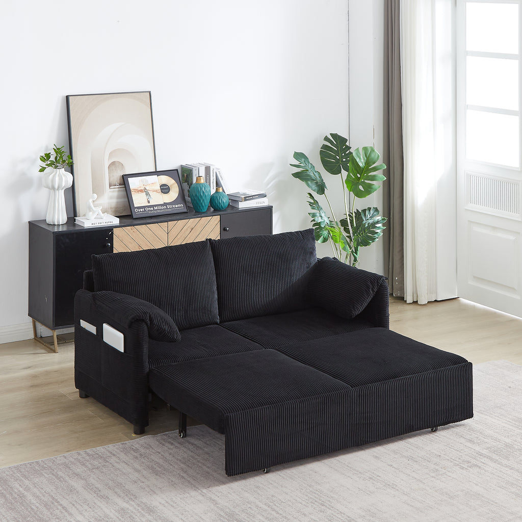 MH'' 64.5 Inch Sleeper Sofa Bed 3-in-1 Adjustable Sleeper with Pullout Bed 2 Pillows and Side Pockets Soft Corduroy Convertible Sleeper Sofa Bed for Living Room Bedroom Apartment Office