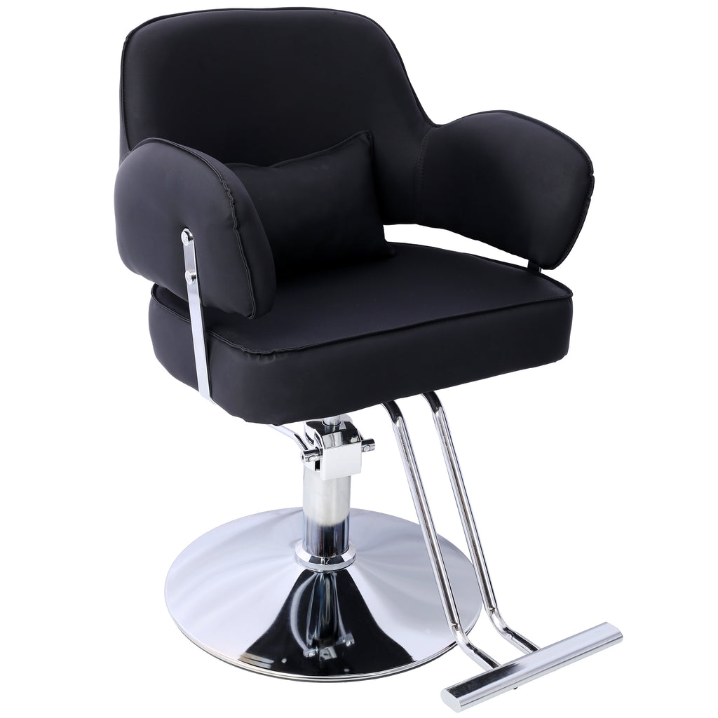 • Comfortable: Featuring a wide cushioned seat measuring 22.4’’W x 20’’D, our styling chair ensures comfort for clients of all sizes. The low backrest is ideal for cutting longer hair, while the modern stainless steel T-shaped footrest with two extra supports enhances comfort and sturdiness.