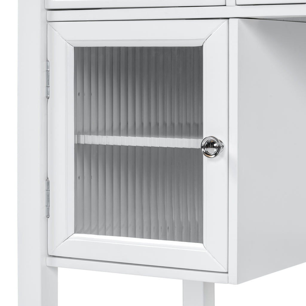 The side cabinet has a door with semi-transparent tempered glass.You can not only view the items inside, but also adjust the patition layer to meet different storage needs.
