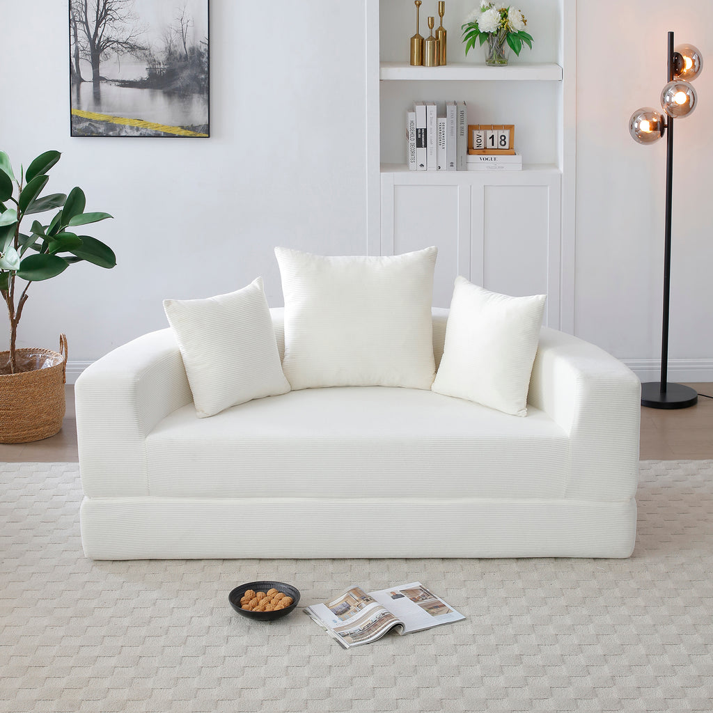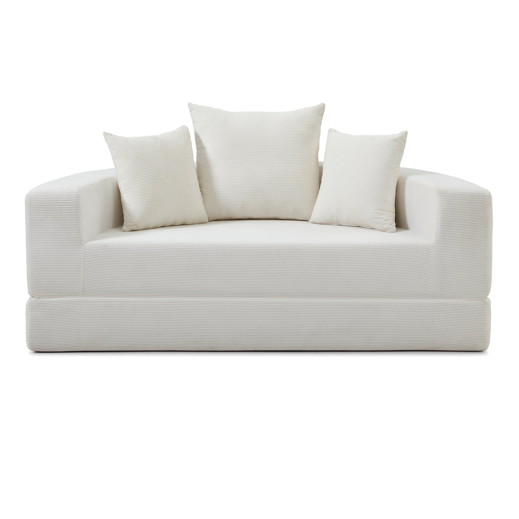 This Corduroy boneless cloud couch design with high-density foam filling. No frame for ultimate relaxation and creates a cozy lounge sofa experience. Soft corduroy fabric cover is durable and super comfy to touch,High-density foam futon sofa bed designed for long-lasting performance.