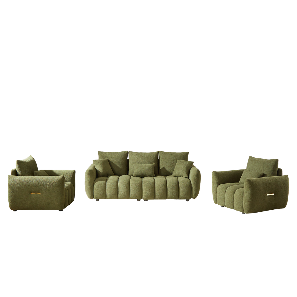 [Removable Pillows and Thick Seat Cushions] Softness is one of the most important features of a sofa. The seat cushions and backrests of the sofa are filled with thick foam, and pocketed springs inside the seat cushions add flexibility. The soft fabric is very skin-friendly. The comfort of the sofa makes it ideal for lounging and provides support for extended periods of sitting.