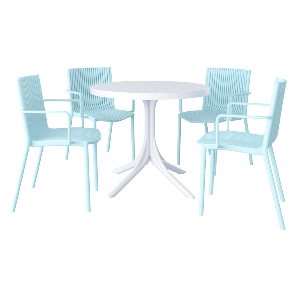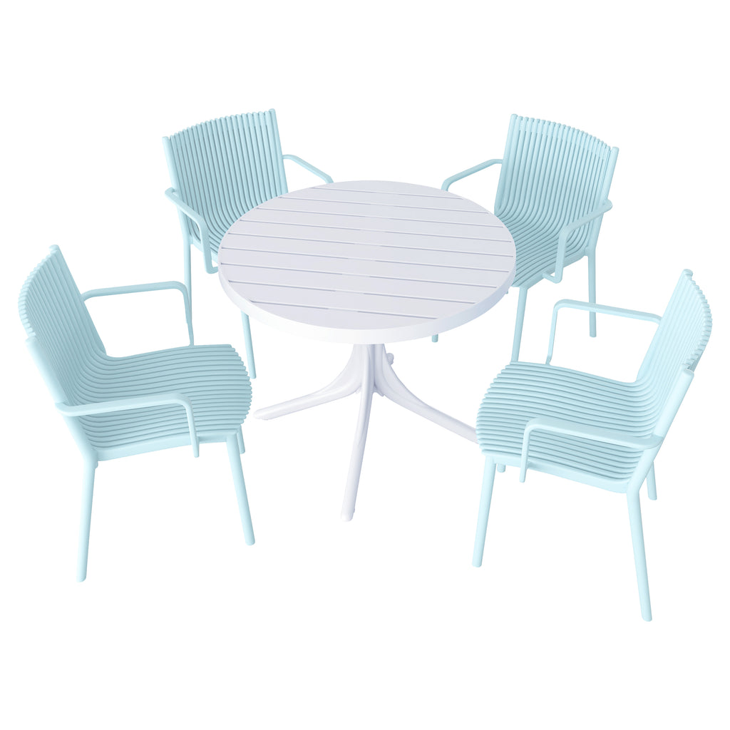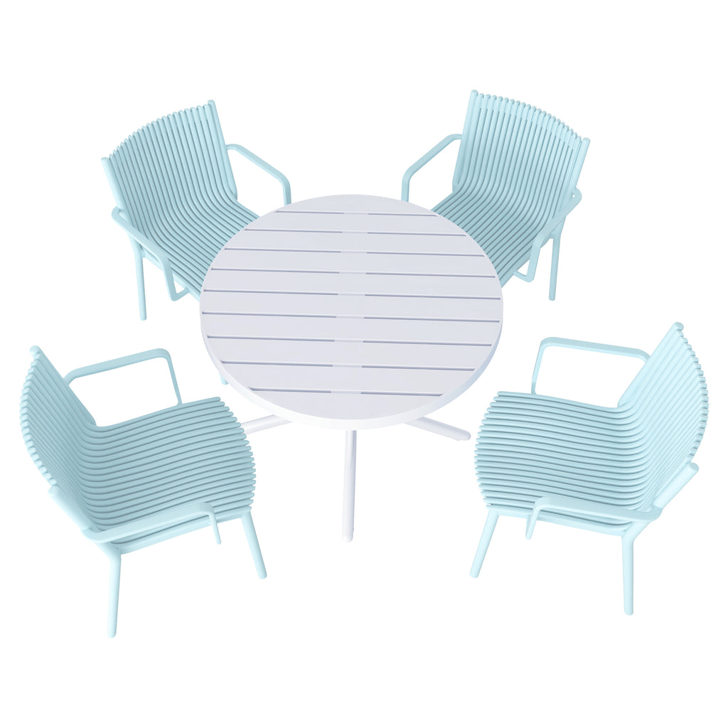 Four pcs Modern Stackable Plastic Armchair Matched with 36 Inch Round Table,Light Baby Blue/White21.26*20.08*31.5(in) /35.43*35.43*29.53 (in),pp
