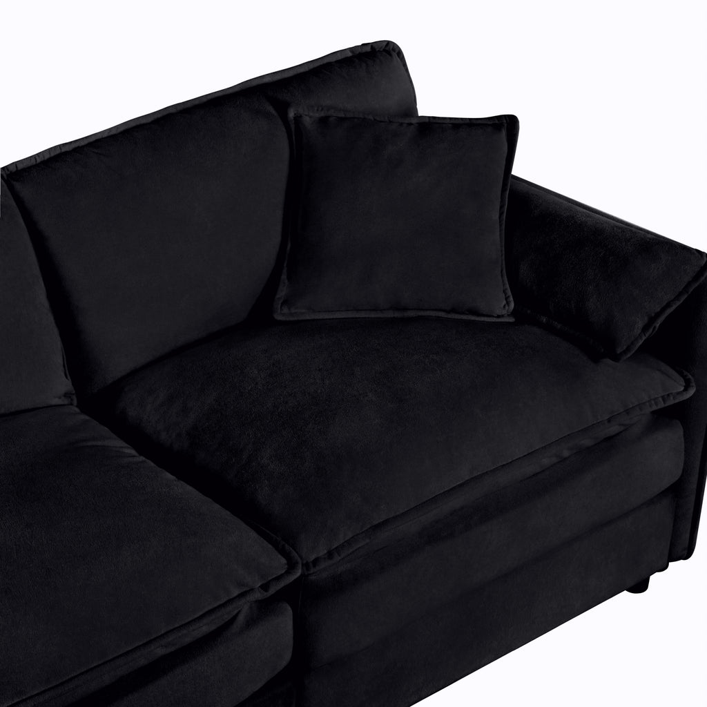 Deep Seat Sectional Cloud Sofa with 2 Ottomans & Soft Pillows, Modular Loveseat Couch, Black Chenille, 75.59 x 57.48 inches