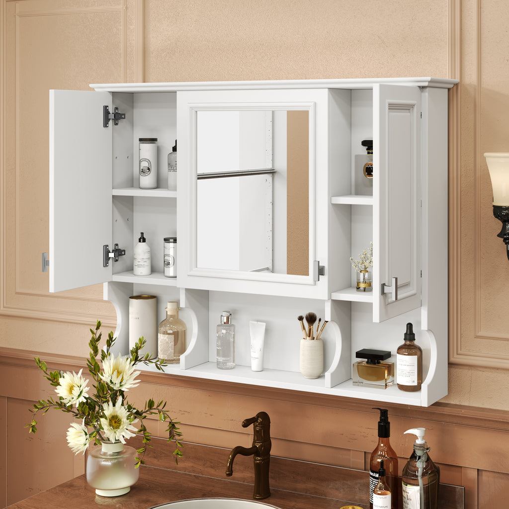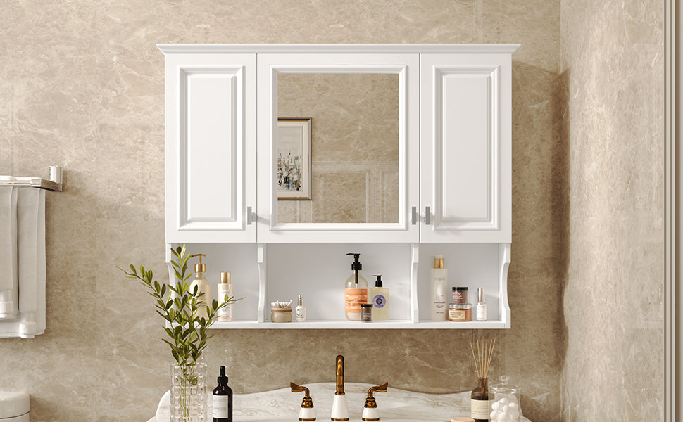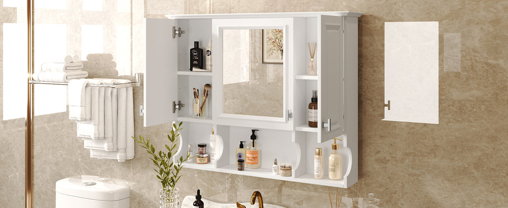 - [High-quality Mirror Medicine Cabinet] Our wall-mounted bathroom mirror cabinet uses high-definition glass to provide a clear and bright vision, illuminating your beauty and handsomeness. The bathroom mirror with storage function adopts high-quality MDF panel, and the waterproof and moisture-proof spray paint process protects the hanging cabinet from moisture and water, which is very suitable for safe use in humid environments such as bathrooms.