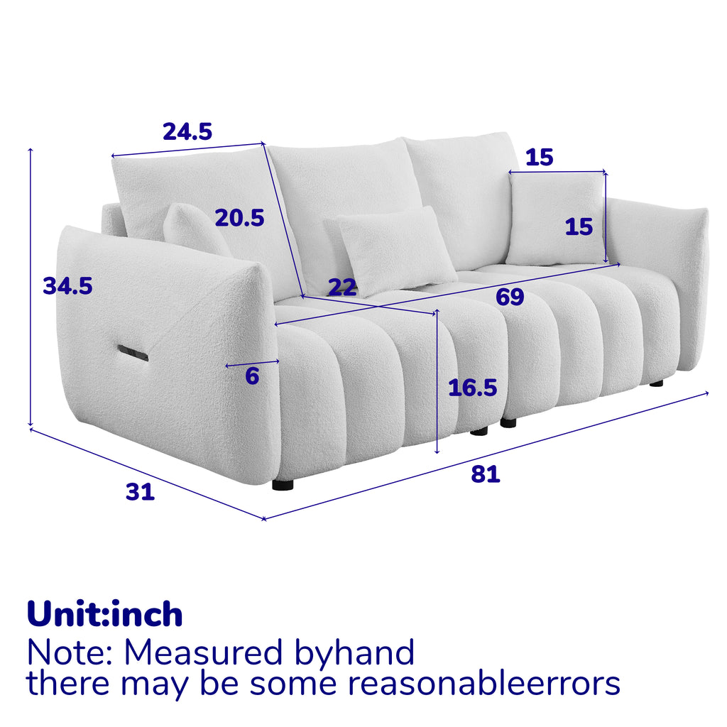 - The modern sofa is made of soft teddy fabric plus foam padding to provide you with maximum comfort. Sitting on it, you will be surrounded by ultra-soft plump backrests with optimal comfort angles, making you feel like you are sitting on a cloud. Add this sofa to make your living room space more sophisticated and elegant.