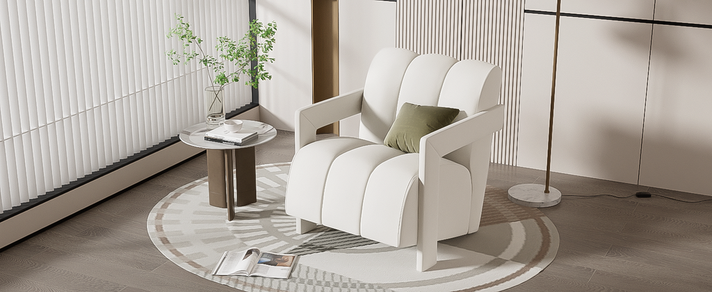 Experience unparalleled comfort and sophistication with this exquisite armchair, crafted from a robust frame and cushioned with plush, supportive elements. Its uniquely designed backrest, thick seat cushion, high-density sponge, and horizontal armrests contour to your body for steadfast support and enduring ease. The chair's fabric, known for its exceptional anti-pilling properties and minimal maintenance needs, retains its delicate texture and adds an artistic flair to your living room, transforming it into a space of visual delight and modern aesthetic expression. The L-shaped armrests, wrapped in soft fabric, offer enhanced comfort, reflecting a user-friendly design.