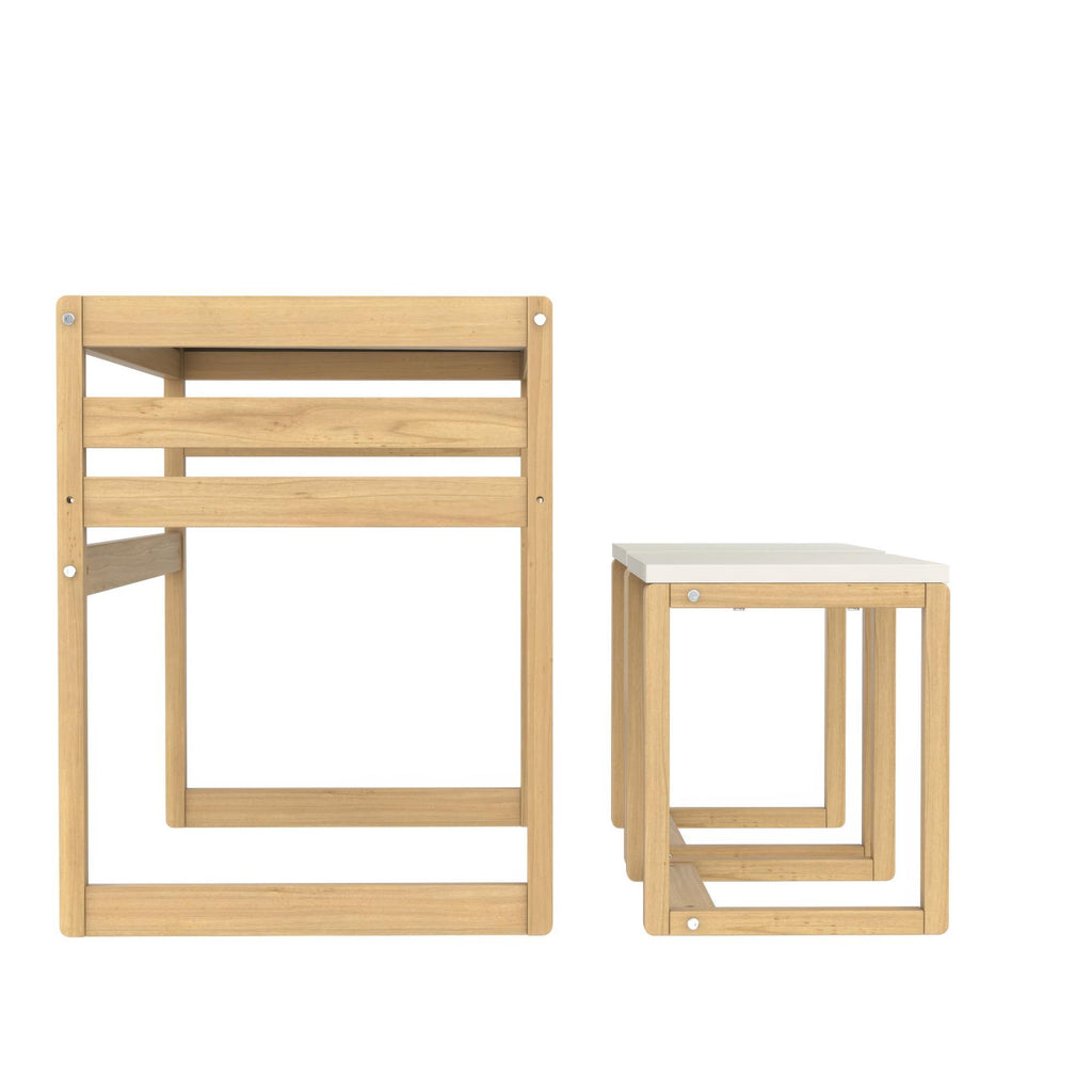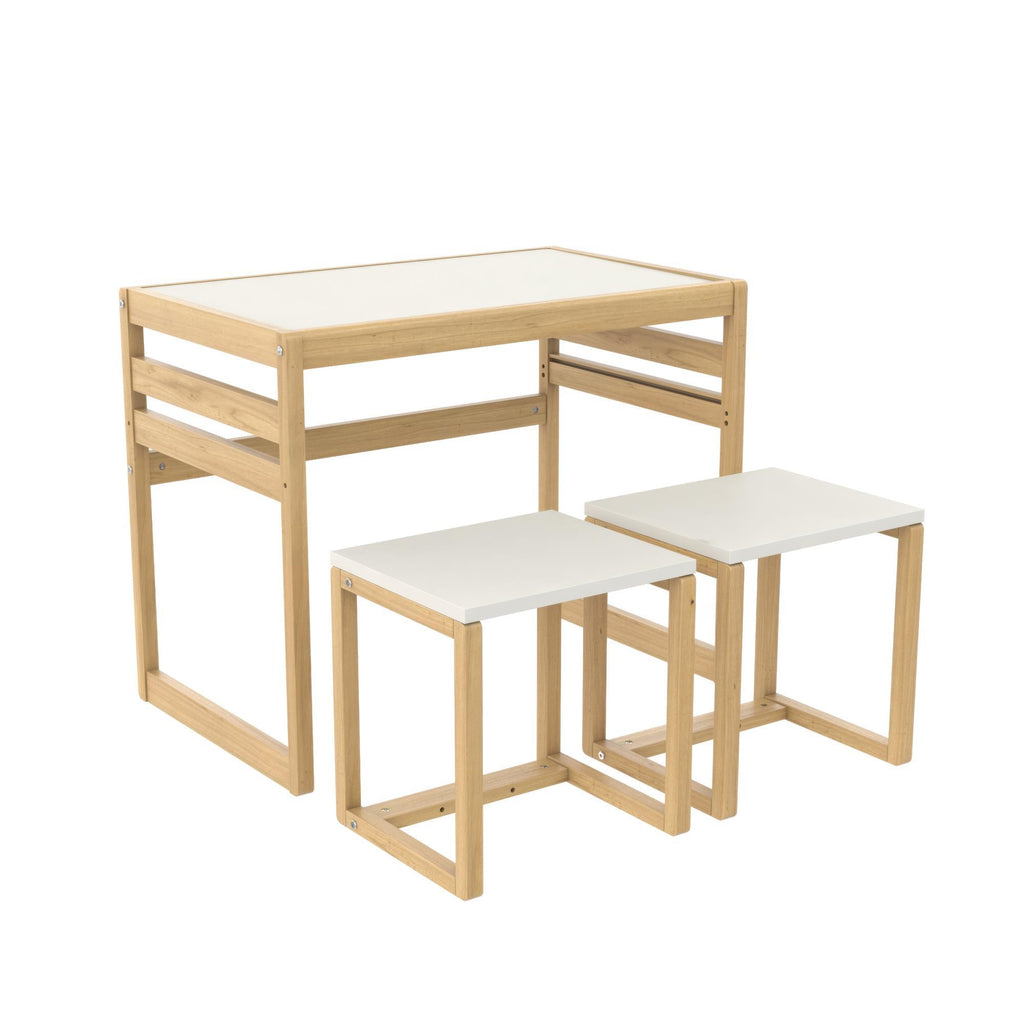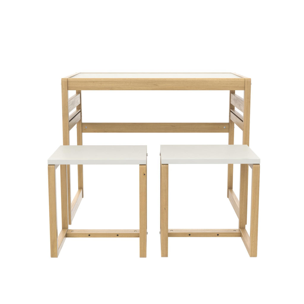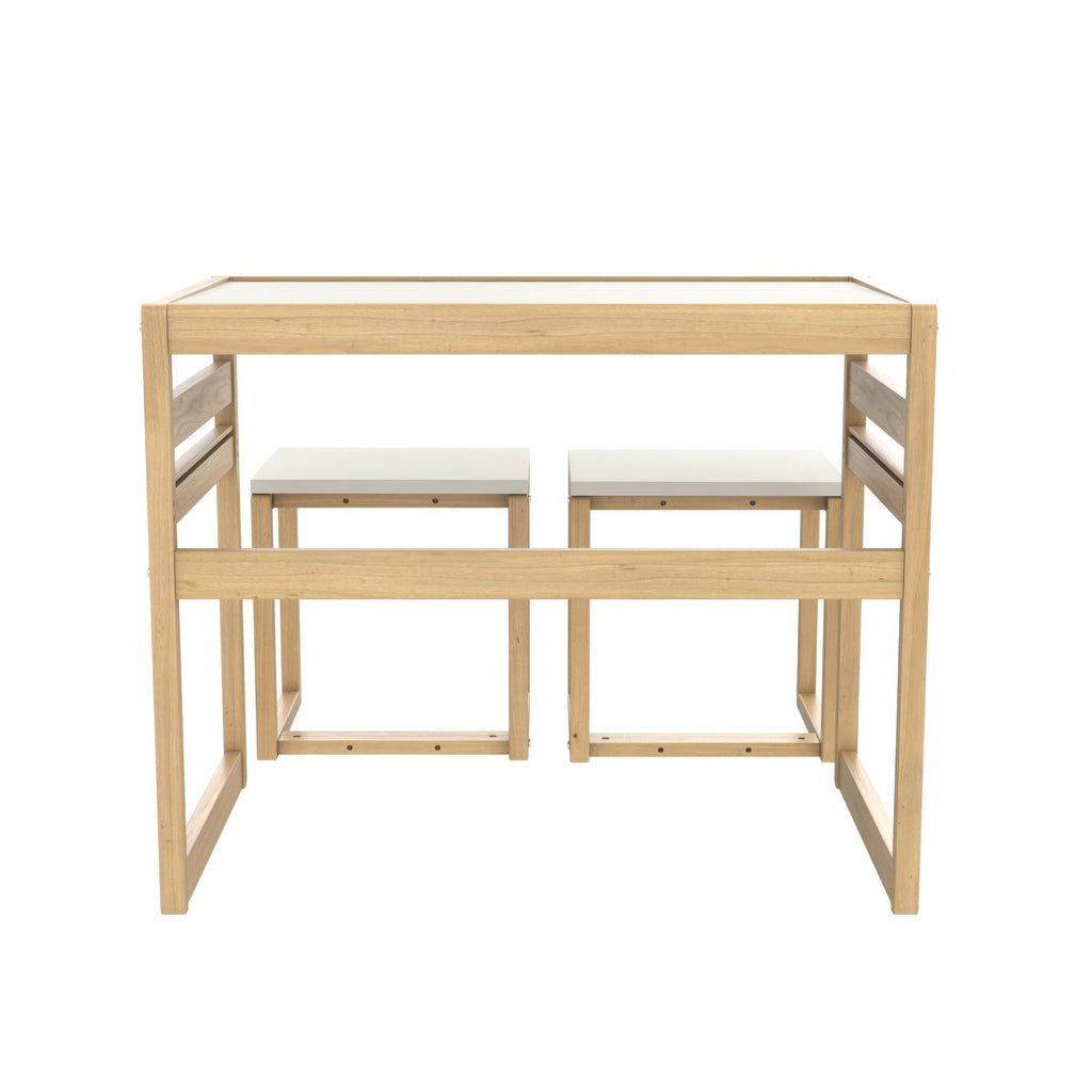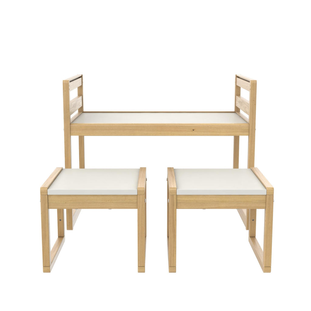 Chart a course for creativity with the Signy 3-Piece Kids' Table & Chair Set! This charming activity set includes one table and two chairs, providing the perfect launchpad for your children to host an impromptu tea party, craft their next macaroni masterpiece, or embark on an imaginative learning adventure. Designed to fit into kids' rooms, living rooms, nurseries, or playrooms, this Montessori-style set will bring joy to your little ones as they discover their special space to create, learn, and play. Parents will love how the Signy adapts to homeschool environments with raised borders to prevent crayons from rolling off, sturdy painted wood construction that withstands daily use, and stools that fit neatly under the table to save space. Perfect for toddlers and preschoolers, with adjustable chair and table heights that grow with your child, this lightweight set can be assembled and ready for play in 30 minutes.