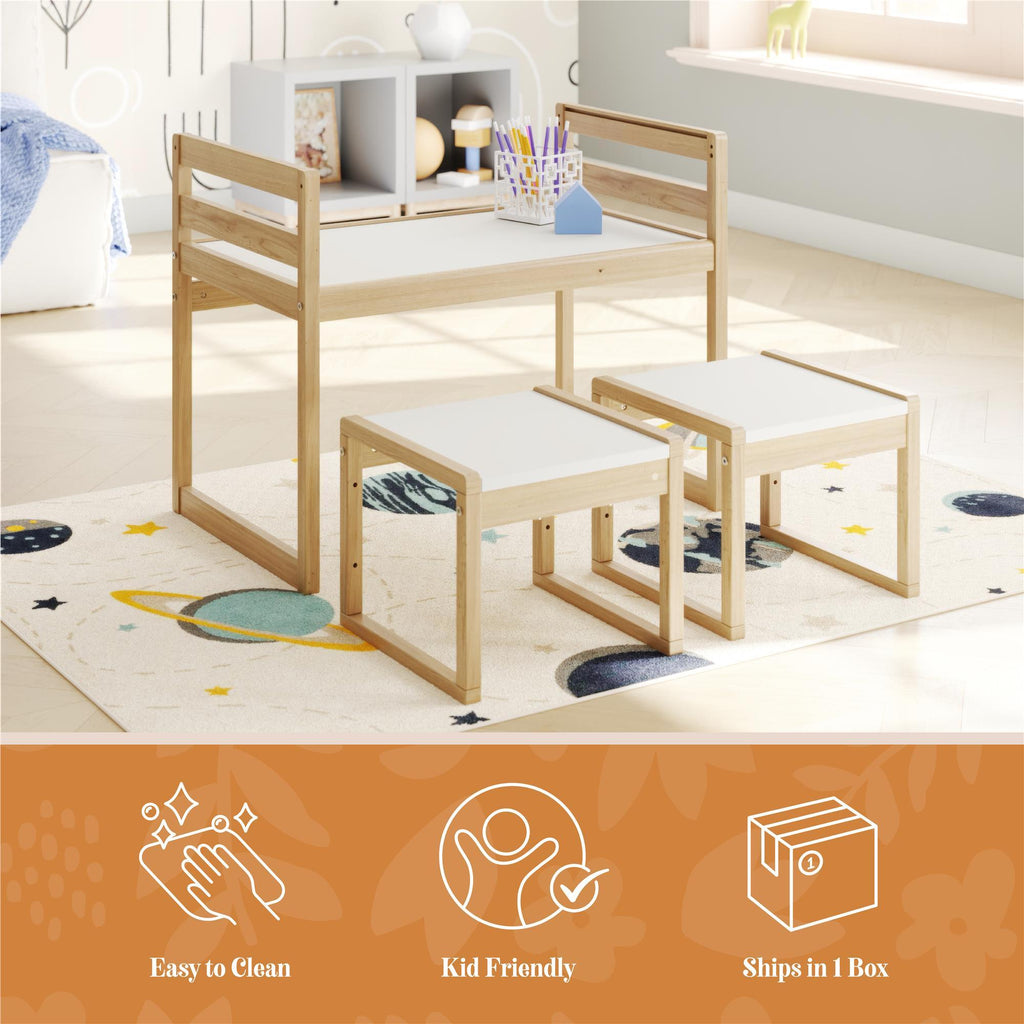 - VERSATILE KIDDY TABLE AND 2-CHAIR SET: Designed to fit into kids' rooms, living rooms, kitchens, nurseries, or playrooms, our Montessori-style 3-piece kids' activity table set encourages children to create, learn, and play in a space crafted just for them
