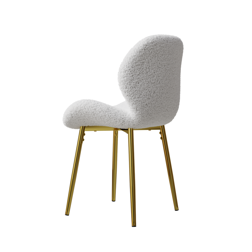 Modern minimalist white teddy velvet Dining Chairs Set of 2 with sturdy gold metal legs and comfortable backrest design, suitable for restaurants, kitchens, and offices.