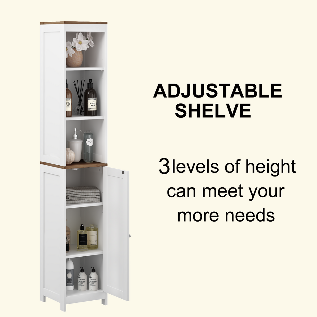 • Designed with adjustable interior shelves, including an adjustable top interior shelf, allowing you to customize the spacing to store towels, toiletries, and bathroom essentials of various sizes.