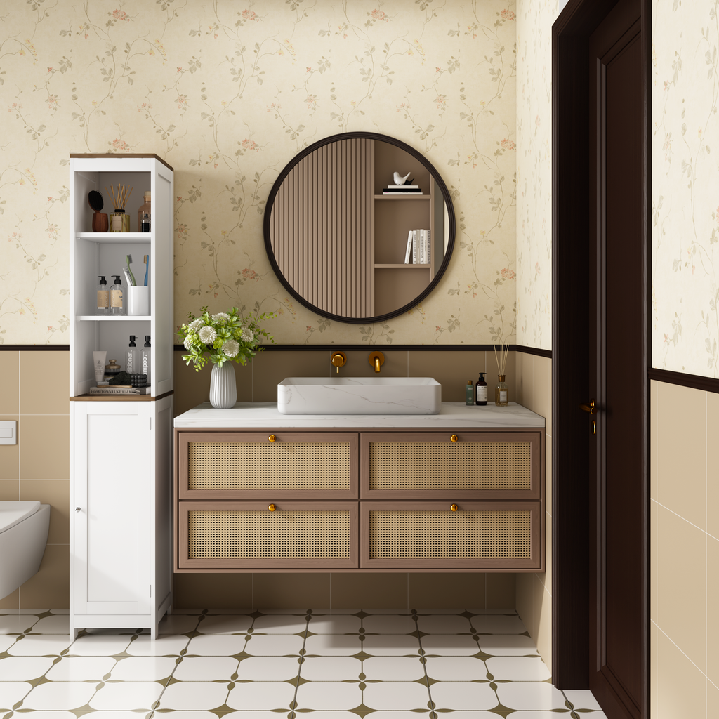 • The cabinet door can be installed to open from either the left or right side, allowing flexible placement to fit different room layouts and bathroom configurations.