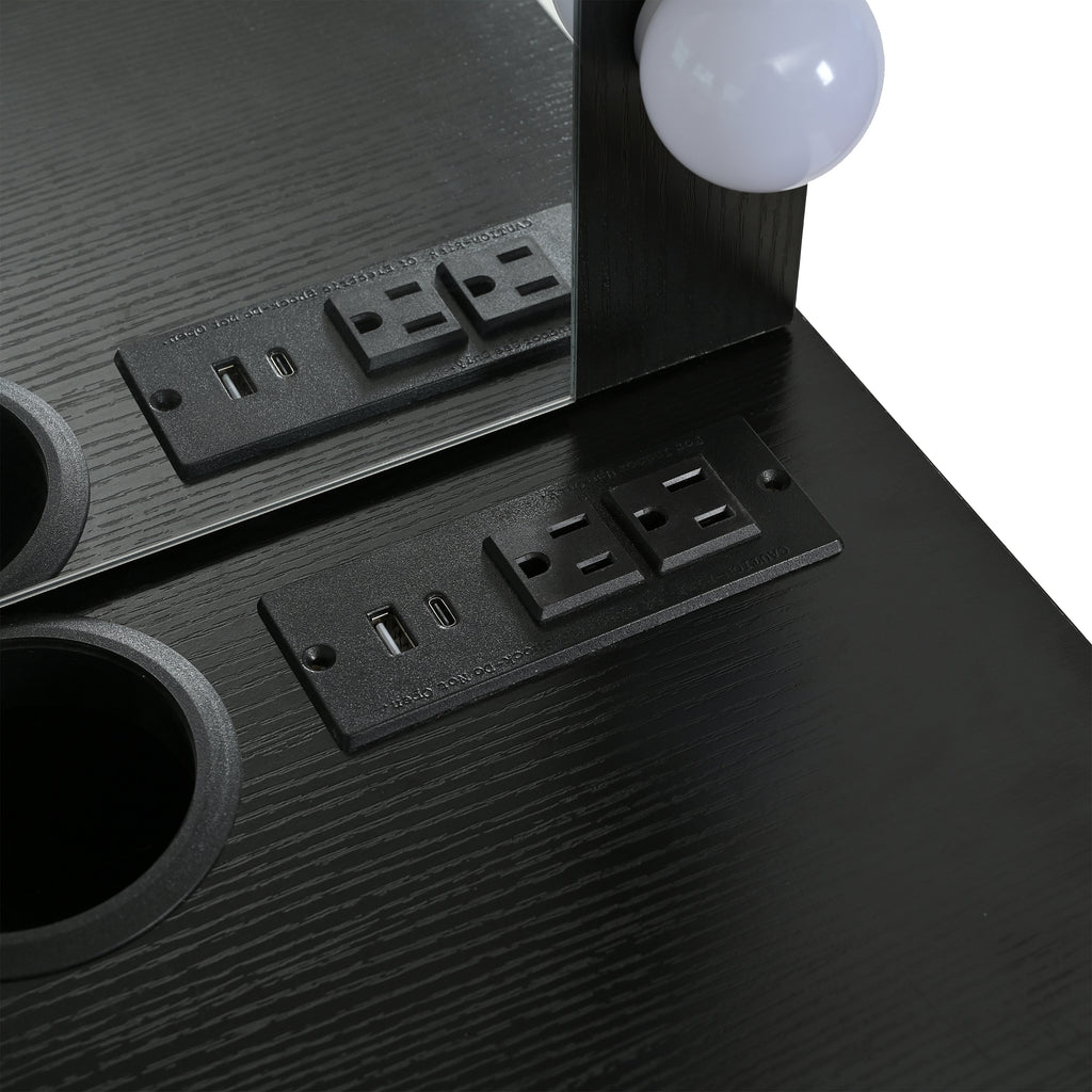 • Convenient Charging Port: A charging port with 1 USB, 1 Type-C, and 2 outlets is conveniently located on the side of the table, allowing you to charge your mobile phone, hairdryer, and other devices while using the vanity.