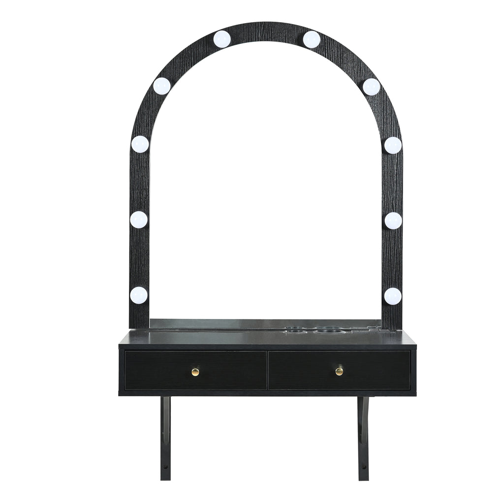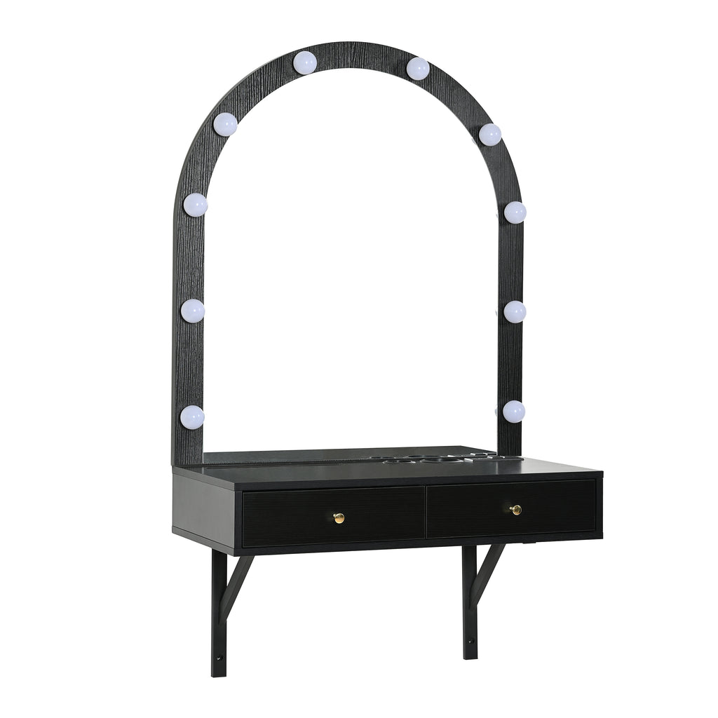 Floating Makeup Vanity Desk with Mirror & 3-Color Lights, Wall Dressing Table with Power Outlet, Compact vanity, Large Storage, Black