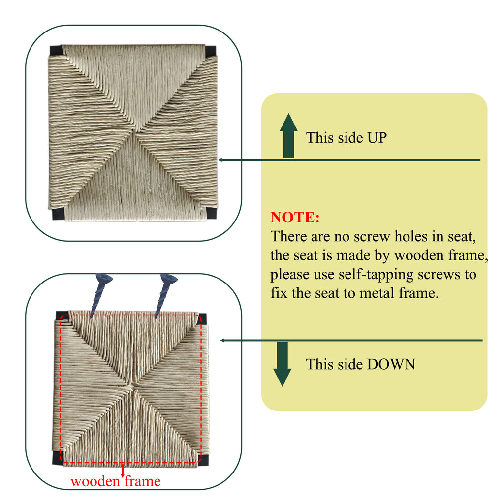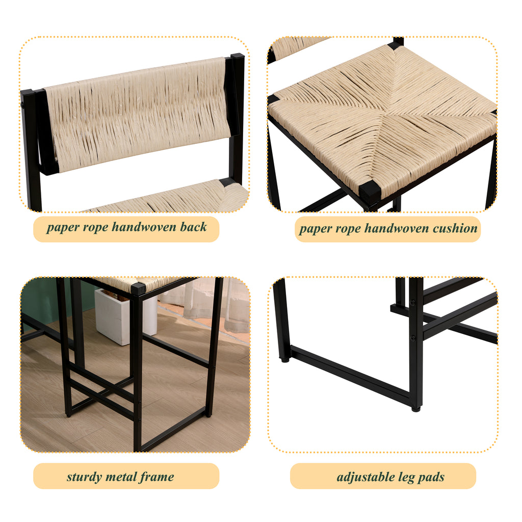 • Durable & Reliable: Our kitchen stool boasts a sturdy black metal frame and woven natural paper rope seat, both of which are built to last. The anti-slip screws ensure stability and long-lasting use.