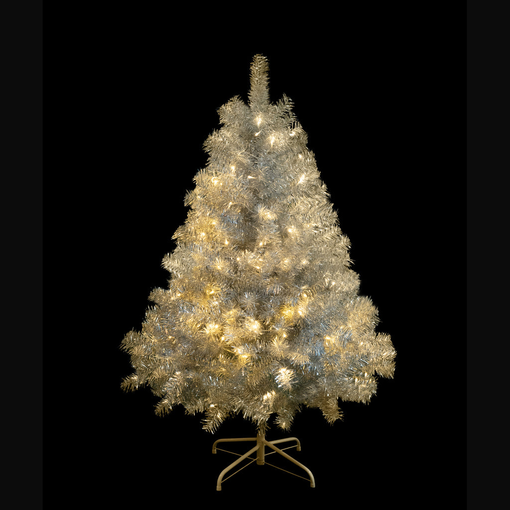 4FT Sliver Pre-Lit Artificial Christmas Tree, Hinged Full Tree with Metal Stand, 400 Branch Tips, 150 LED Lights,11 Lighting Modes, Holiday Decoration Tree for Indoor and Outdoor