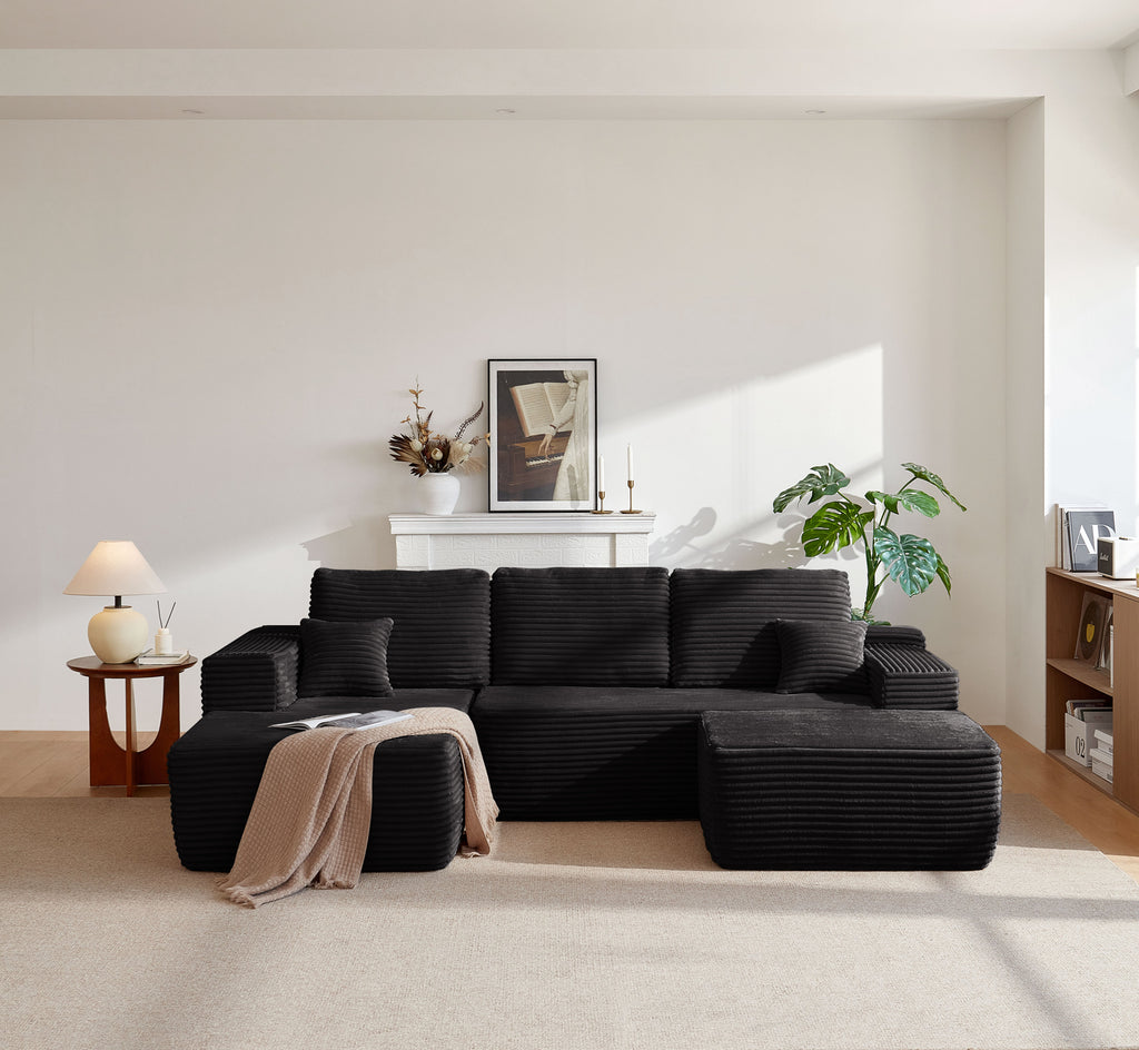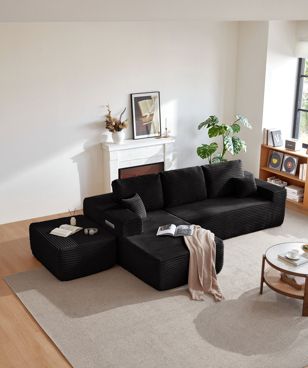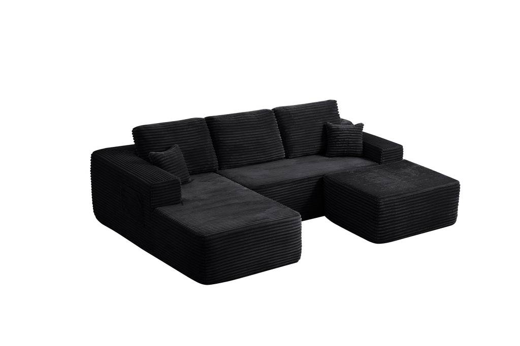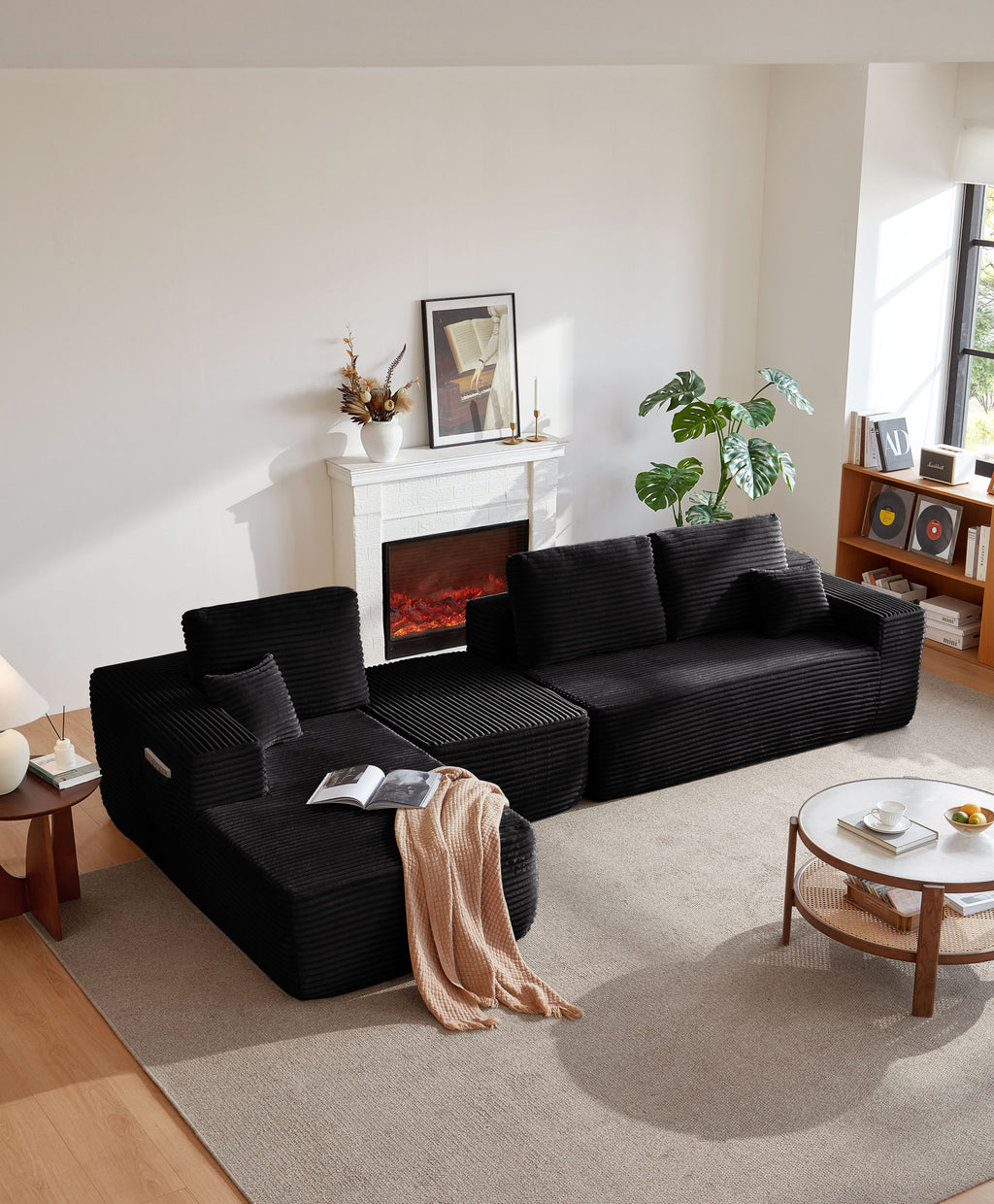 • Modular Sectional Sofa:This sectional sofa featuring a sleek design, clean lines, and high-quality plush corduroy Fabric,This sectional set maximizes space when placed against a wall,this corner sofa effortlessly adds a timeless and sophisticated touch to your home. Designed to be the focal point of attention, it's an ideal choice for elevating the ambiance of living rooms, apartments, and bedrooms.