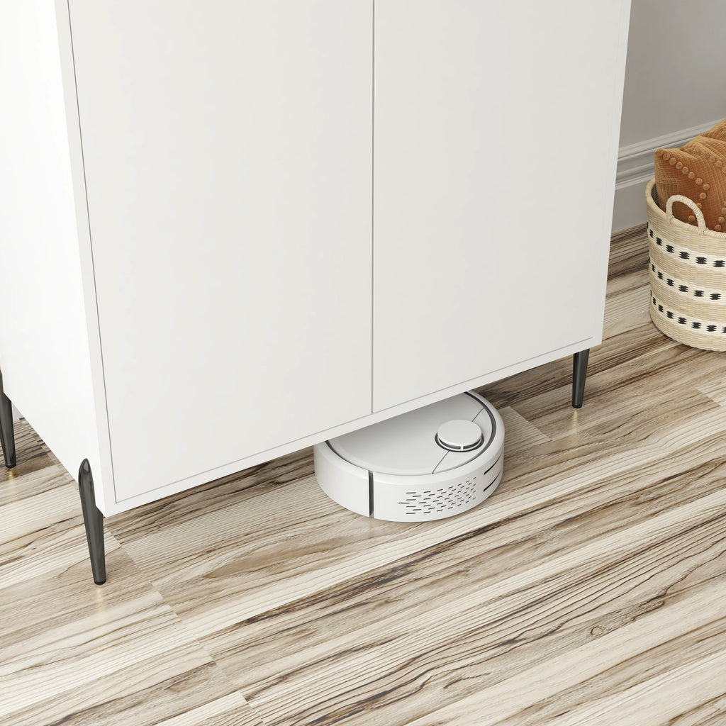 Equipped with 4 pcs 5.9' high metal feet, it stands stably without wobbling and is tall enough to accommodate a vacuum cleaner.