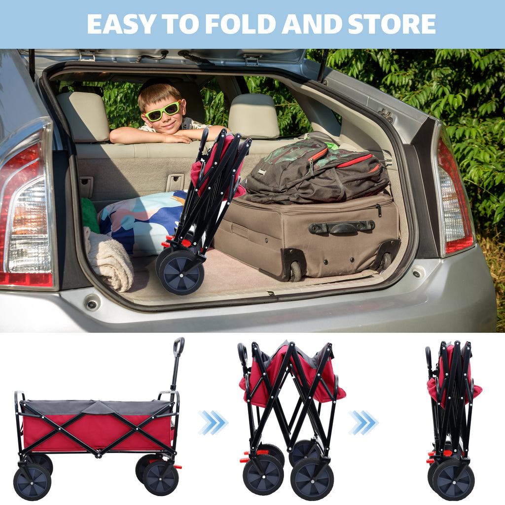 150L Collapsible Wagon Cart Foldable, Utility Garden Wagon with 360lbs Weight Capacity, Heavy Duty Portable Sport Wagon with Wheels for Outdoor, Grocery, Shopping