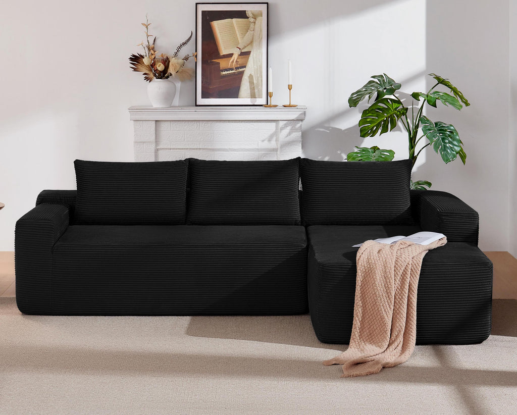105' Cloud Sectional Couch with L-Shape Chaise,Modern Modular Sofa with Deep Seat, Upholstered Couches for Living Room Bedroom,No Assembly Required, ( Corduroy Fabric),Black