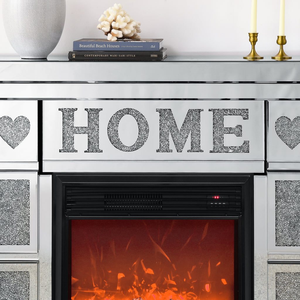• The fireplace features a charming mirror finish design and is adorned with artificial crystals on both sides. This exquisitely crafted electric fireplace can also be used as a decoration. You can add photos, TV, Christmas decorations, and more, making it perfect for bedrooms, living rooms, and restaurants.