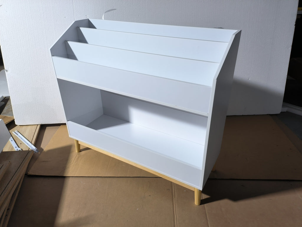 • Modern Look for Any Room – With its minimalist white design and natural wood legs, this large storage bookcase blends seamlessly into playrooms, bedrooms, classrooms, or nurseries.
