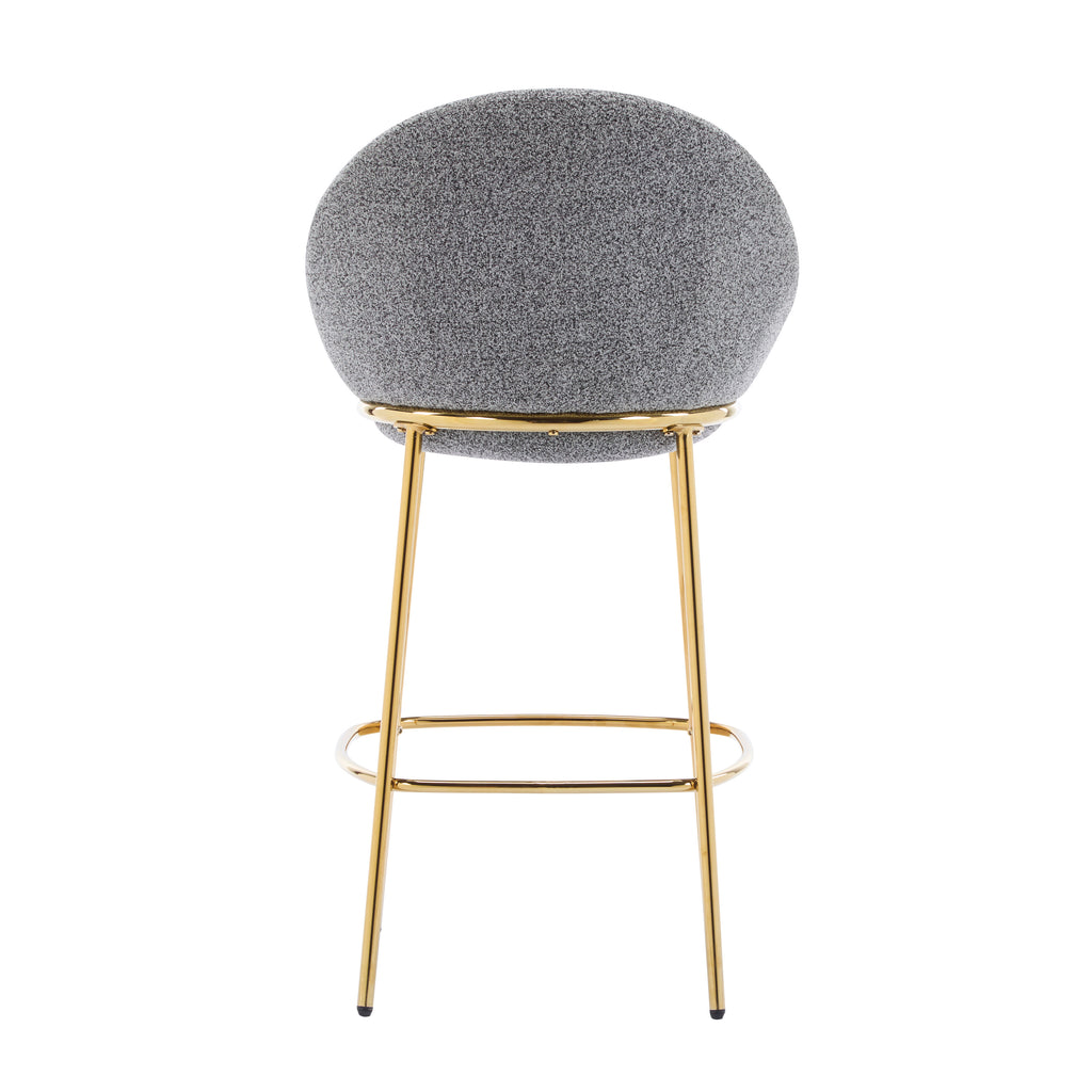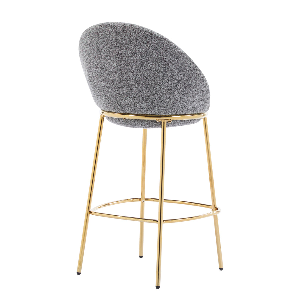 Celano Indoor Metal Upholstered Barstool, Gold-Plated Frame and Mixed Gray Upholstery, Set of 2
