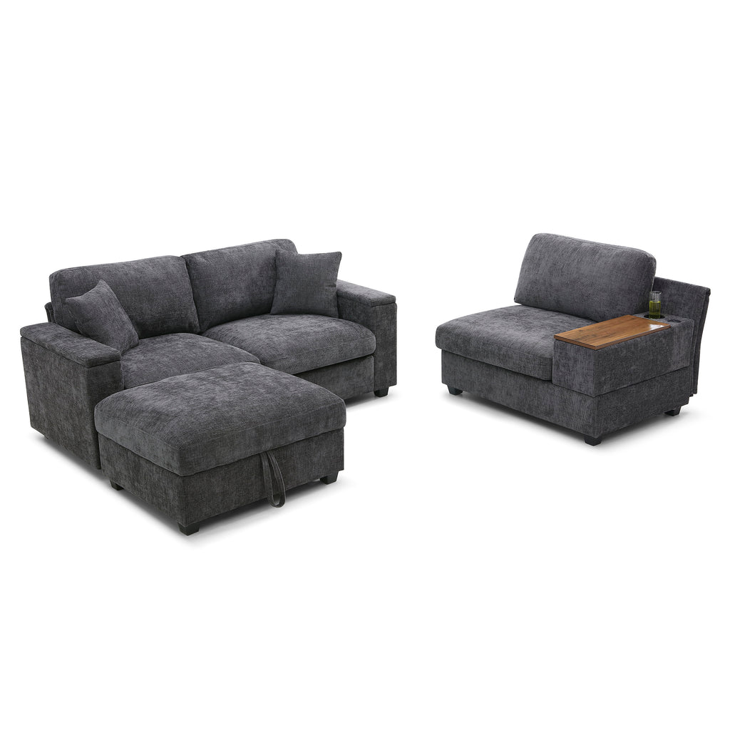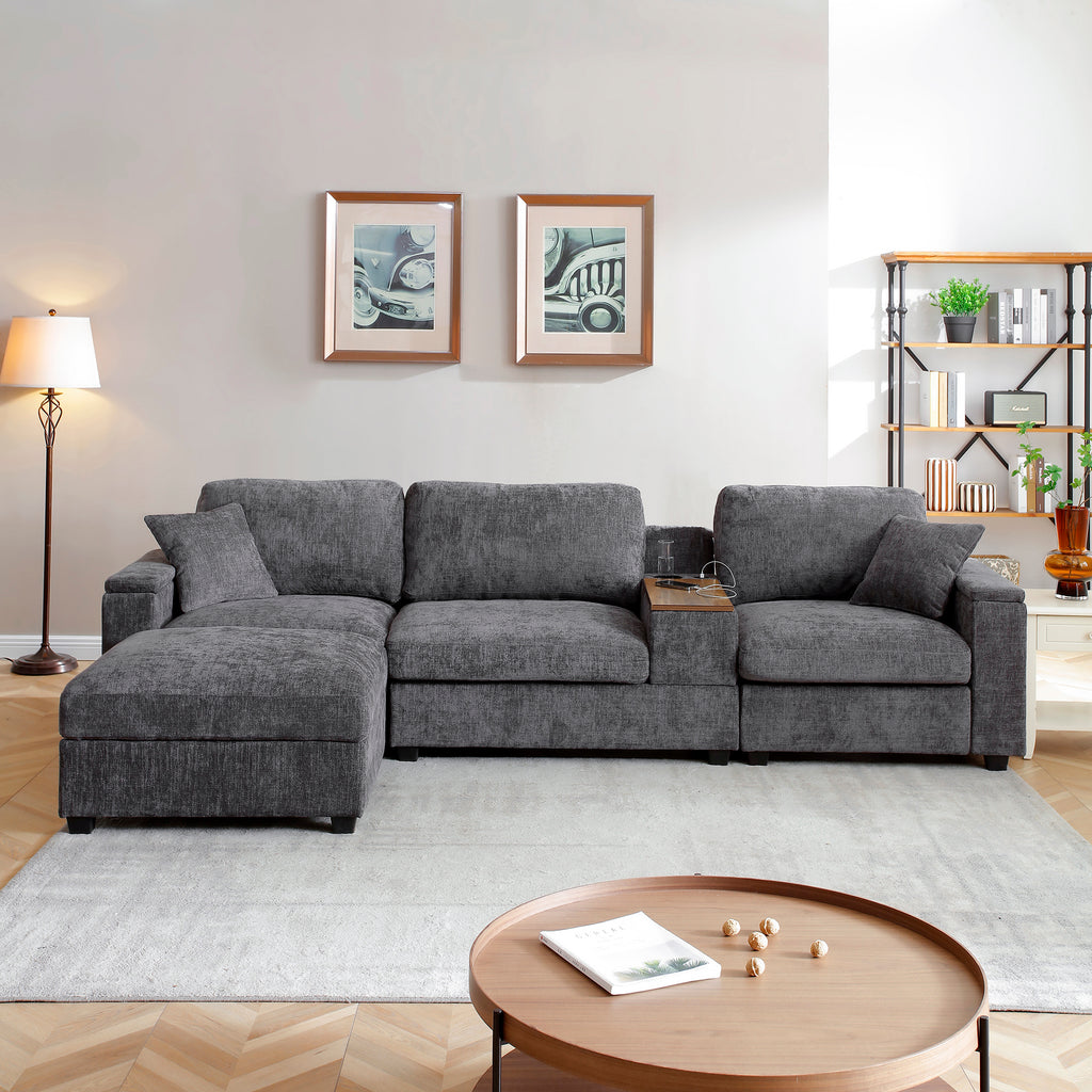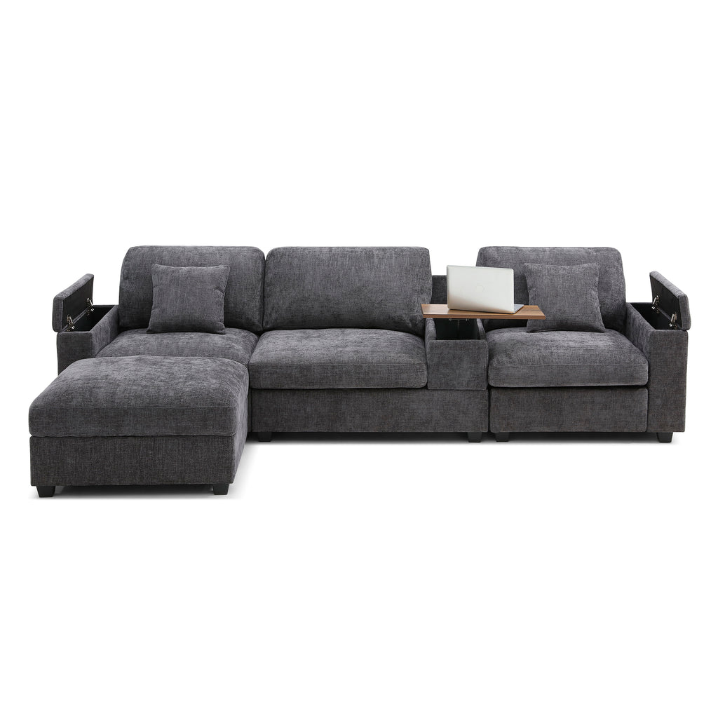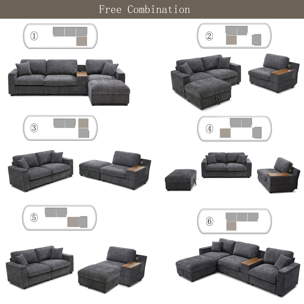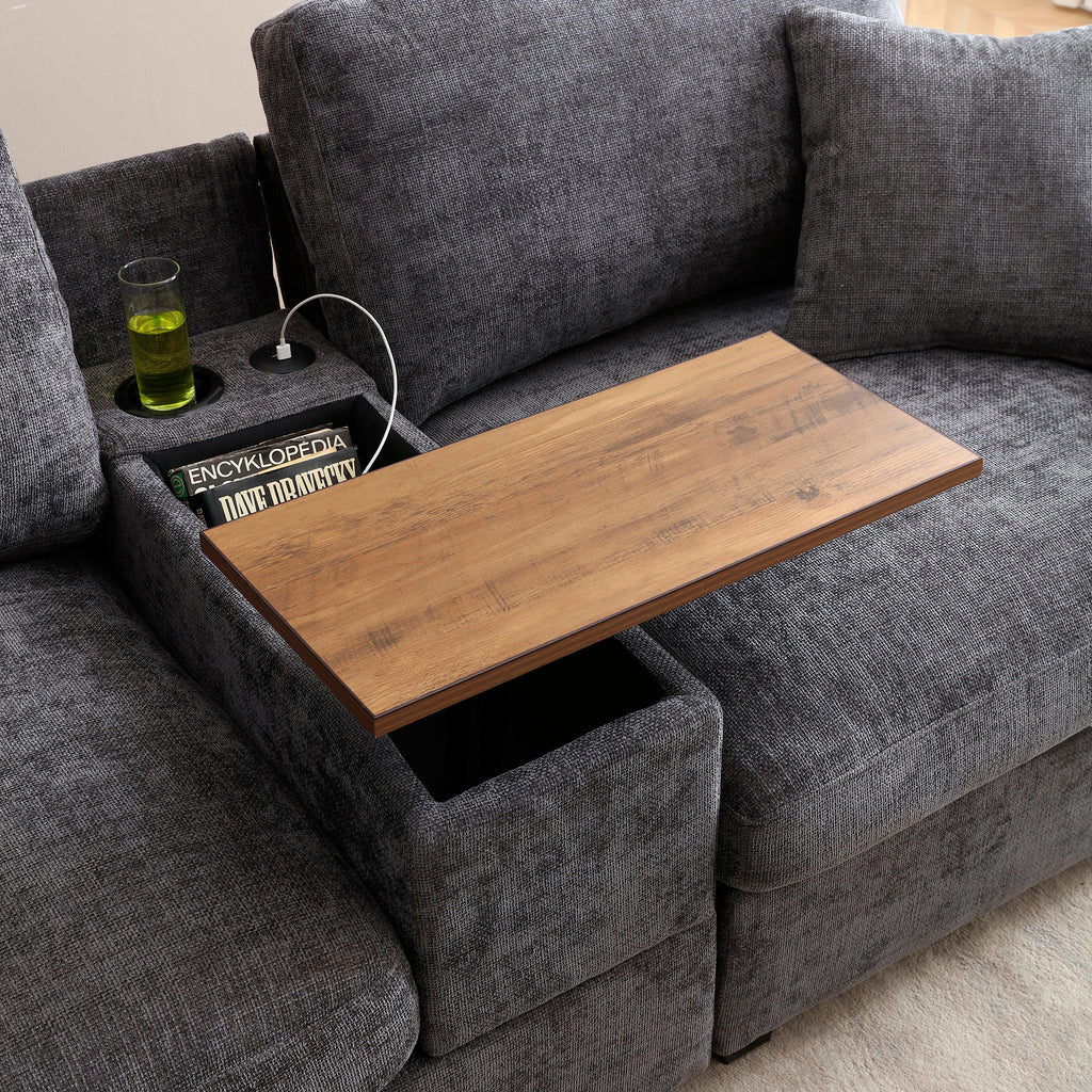 Comfy Cloud Couch Set with Drop Down Table,Cup Holders,USB Charger,Storage Armrest,Wide Seat ,The integrated foldable table 360-degree rotatable offers exceptional versatility.L-shaped sectional sofa, featuring modular components with a matching ottoman. Perfect for large living rooms, the sectional sofa brings together style, comfort,