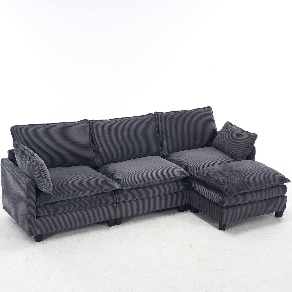 [VIDEO provided][New] Modular Sofa , Velvet Large U-Shaped Couch Comfy Upholstered 3-Seat Sofa with 1Ottoman, 2 Lumbar Pillow, Deep Seat Couch for Living Room