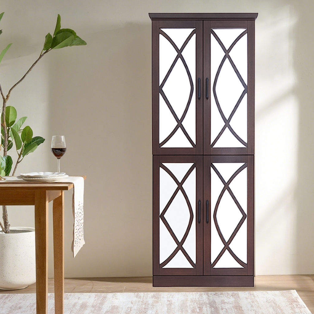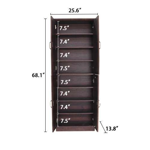 • Two doors with mirror, when you choose a pair of shoes , it can easy to see if it is suit for your wearing.The black metal handles, which are comfortable to touch, simplify the process of opening the cabinet