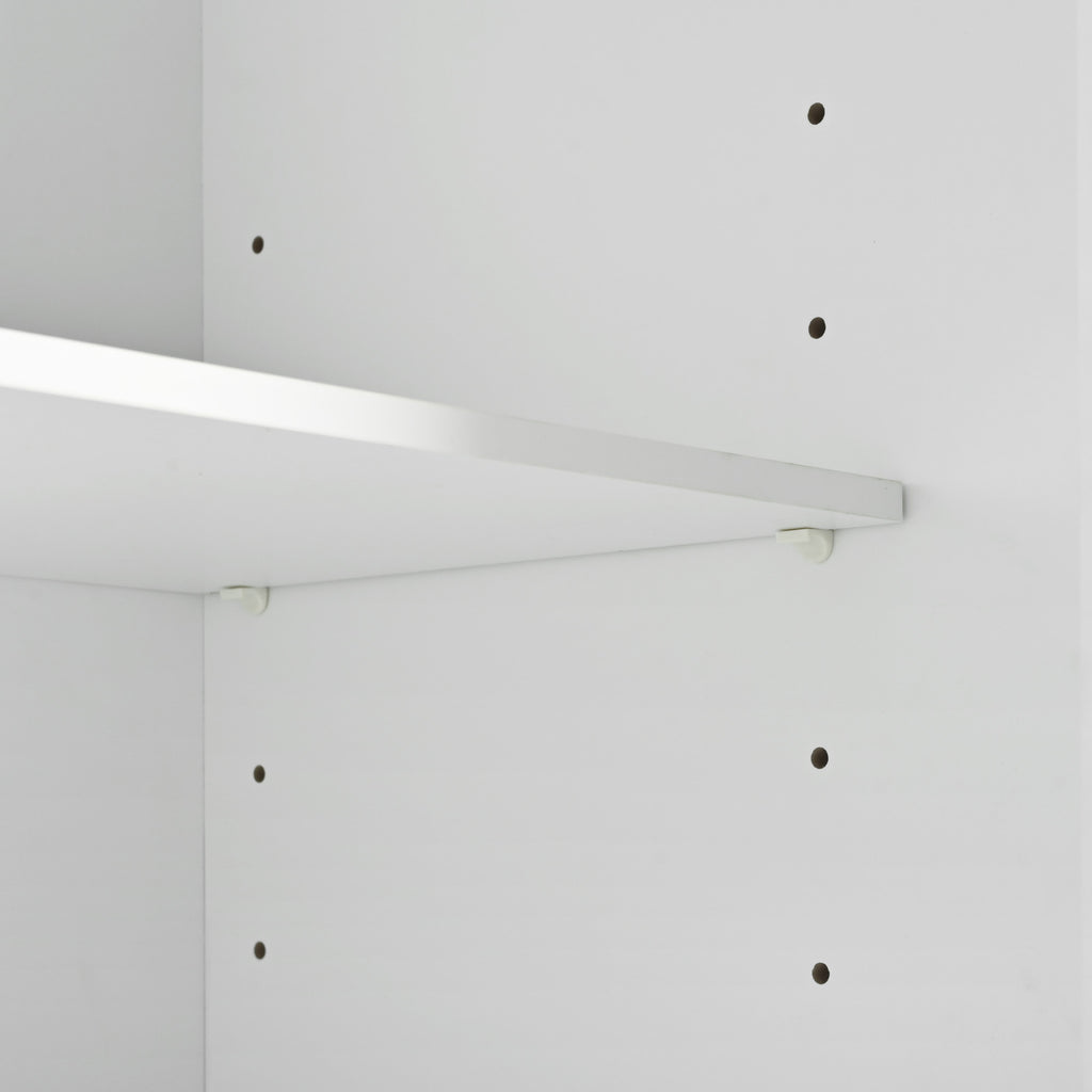 Height-adjustable shelves inside the cabinet doors provide flexibility in accommodating various kitchen items of different sizes.