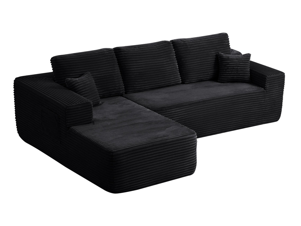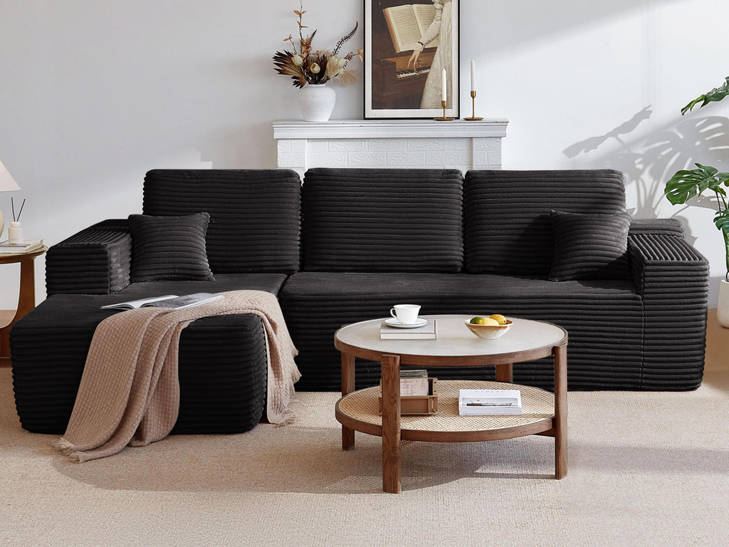 • Modular Sectional Sofa:This sectional sofa featuring a sleek design, clean lines, and high-quality plush corduroy Fabric,This sectional set maximizes space when placed against a wall,this corner sofa effortlessly adds a timeless and sophisticated touch to your home. Designed to be the focal point of attention, it's an ideal choice for elevating the ambiance of living rooms, apartments, and bedrooms.