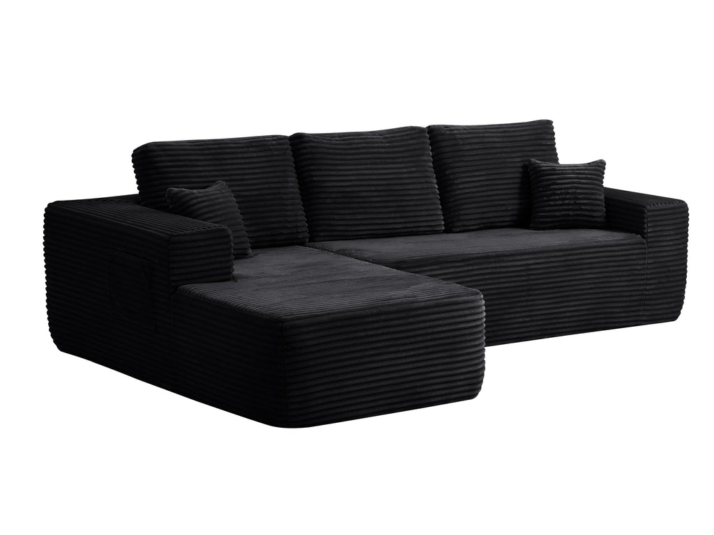 104' Cloud Sectional Sofa with L-Shape Chaise and Side Pockets , Modern Modular Design, Deep Seating, Upholstered Couch for Living Room/Bedroom, No Assembly Required (Plush Fabric), Black, Left-facing