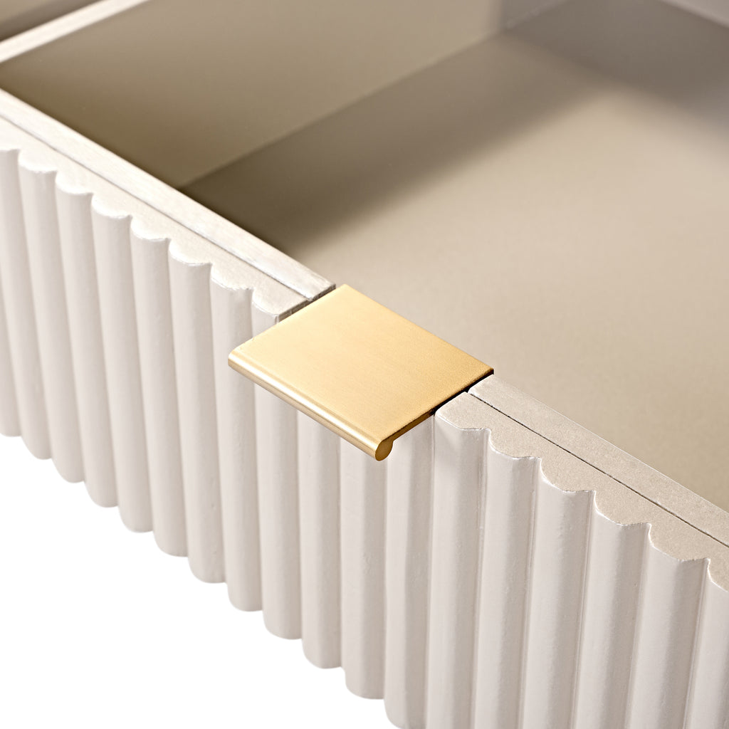 - Ample Storage Solutions: Equipped with a spacious tabletop, two large drawers, and two smaller drawers, this dresser offers plenty of storage space for cosmetics, skincare products, and jewelry. Keep your belongings organized and easily accessible with this well-designed storage solution.