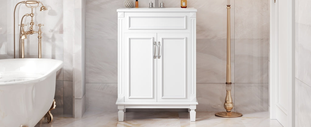 24'' Bathroom Vanity with Top Sink, Modern Bathroom Storage Cabinet with 2 Soft-Closing Doors and Adjustable Shelf, Solid Wood Frame