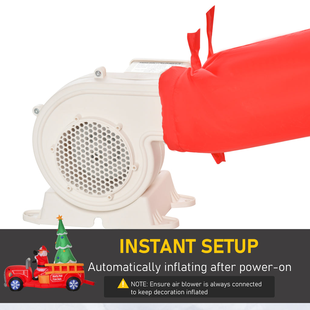 HOMCOM 7.5ft Christmas Inflatable Santa Claus Driving a Fire Truck with Tree, Outdoor Blow-Up Yard Decoration with LED Lights Display