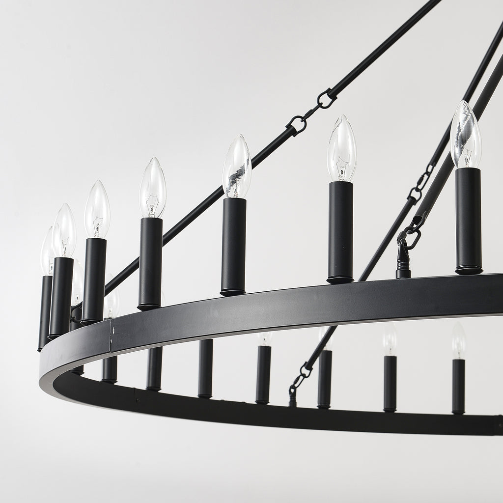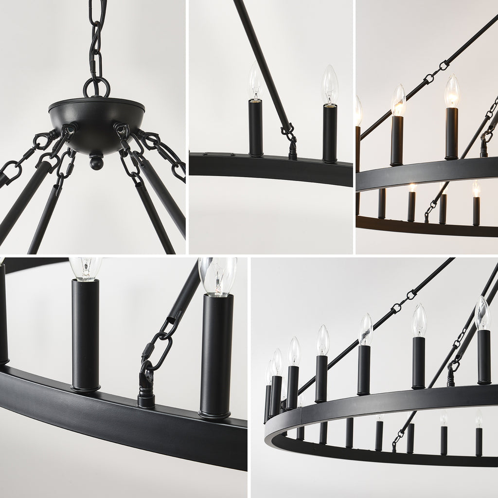 • 【Farmhouse Wagon Wheel Chandelier】The matte black wagon wheel chandelier features a high quality round frame that creates a vintage industrial and nostalgic style.