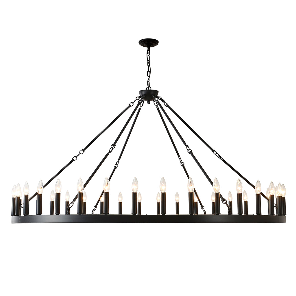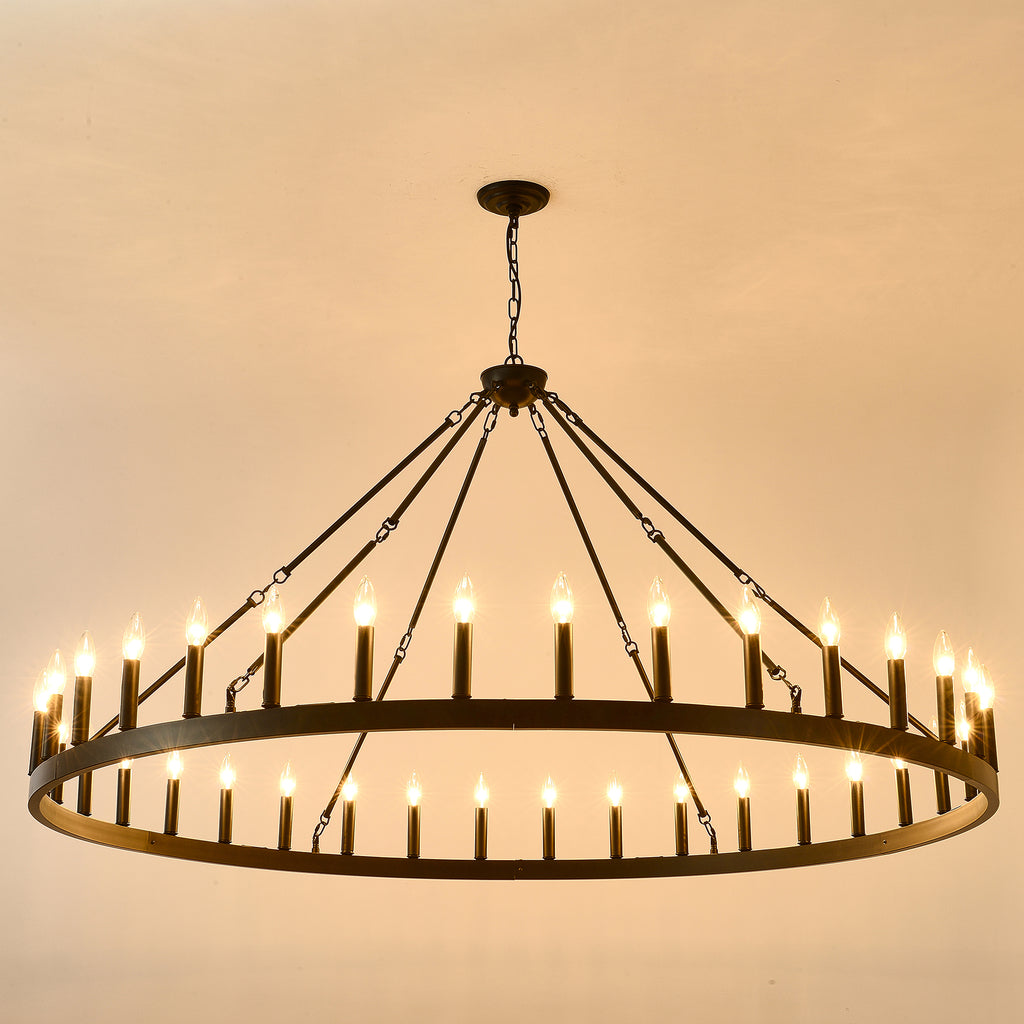 63.8 INCH 36-Light Extra Large Wagon Wheel Chandelier, Black Farmhouse Round Wheel Chandelier Light Fixtures Wagon Wheel Chandeliers For Porch High Ceilings Dining Room Living Room,Kitchen,Bedroom-E12