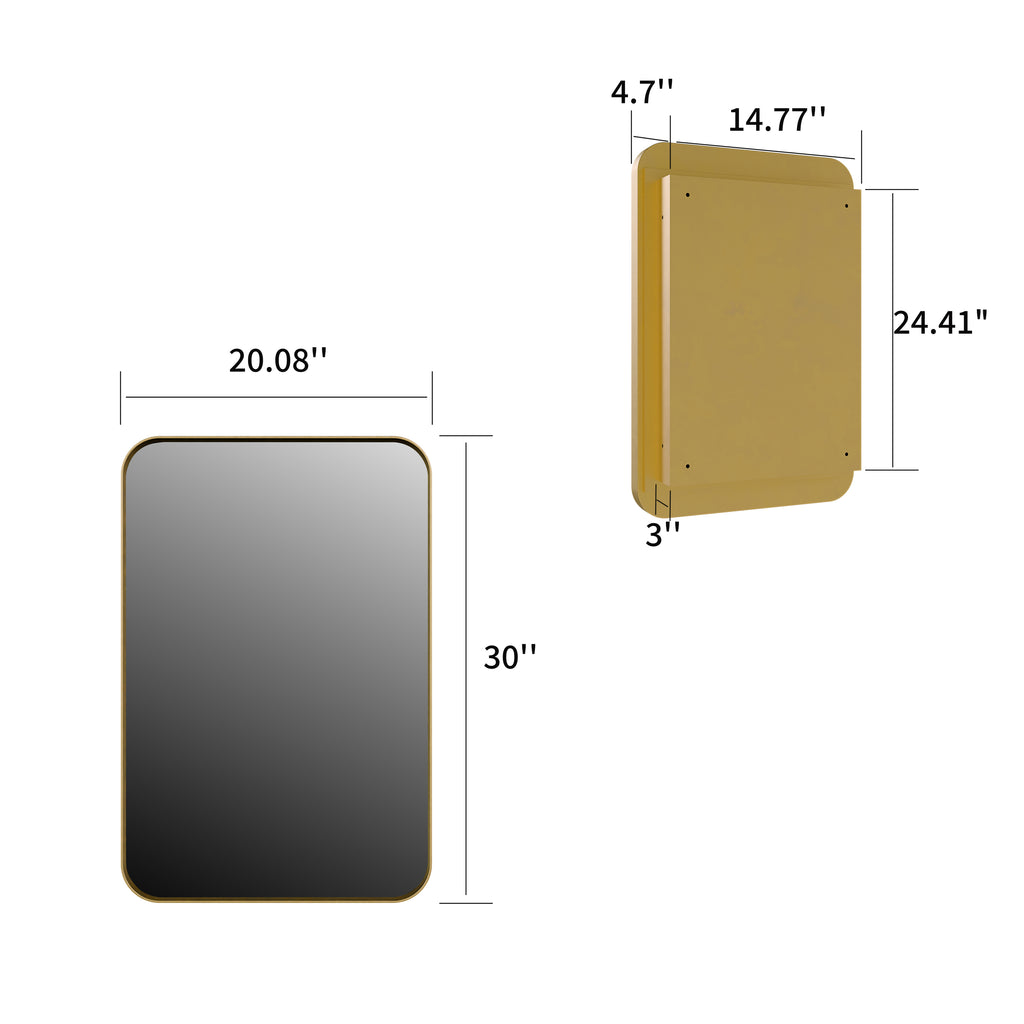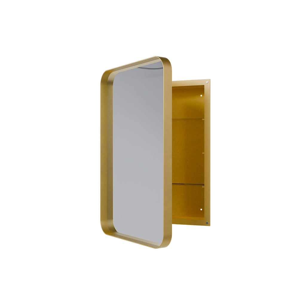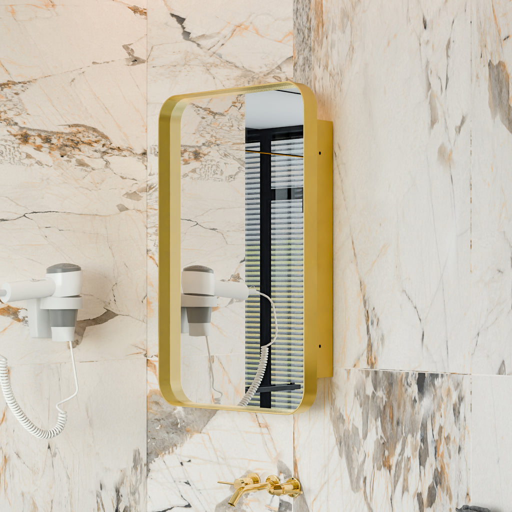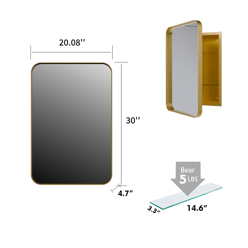 Recessed Golden Metal Framed Medicine Cabinet with Mirror and Adjustable Shelves