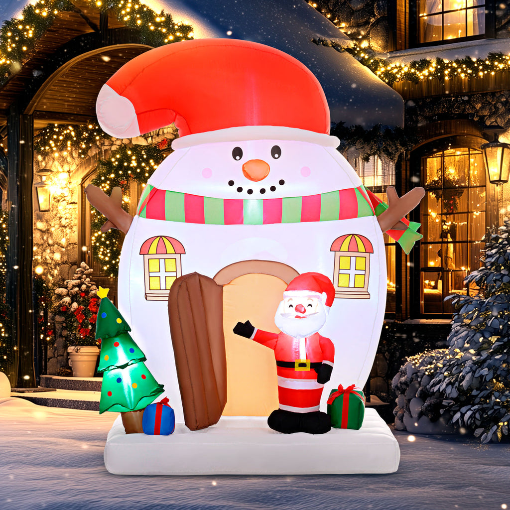 Outsunny 7.5FT Christmas Inflatable Snowman House with Santa Claus and Xmas Tree, Giant Christmas Inflatables, Huge Blow Up Christmas Decorations with LED Lights for Indoor, Outdoor, Yard, Party