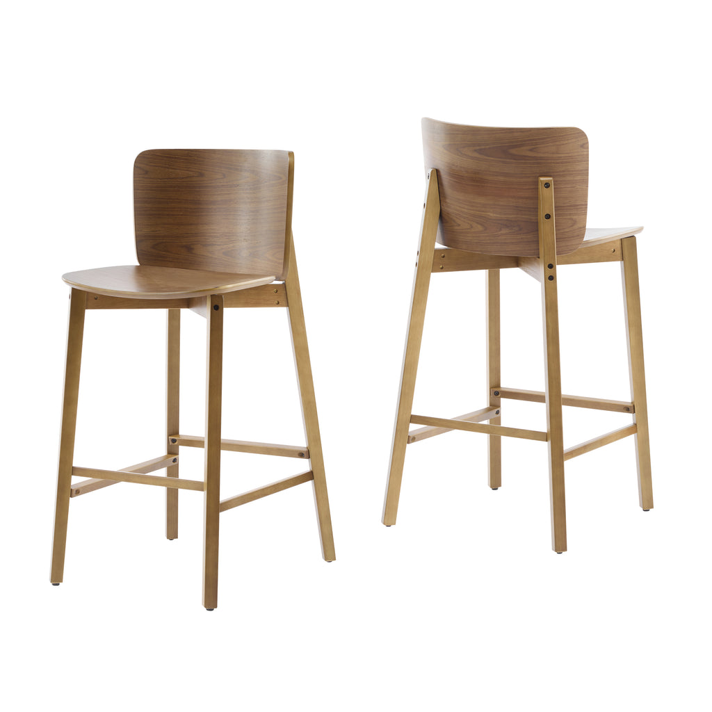 Pari Indoor Wooden Barstool, Walnut Finished, Set of 2