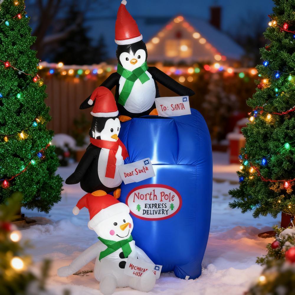 - Penguin and snowman with mailbox inflatable brings a cohesive Christmas display together