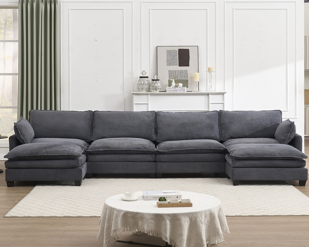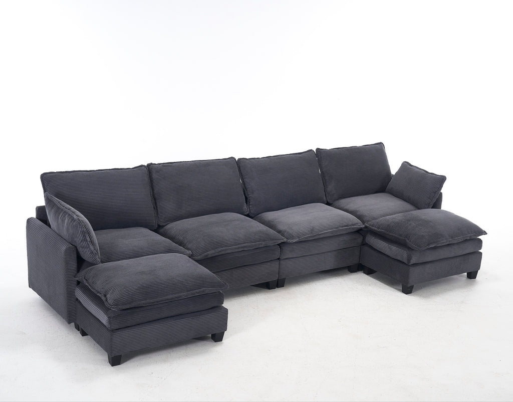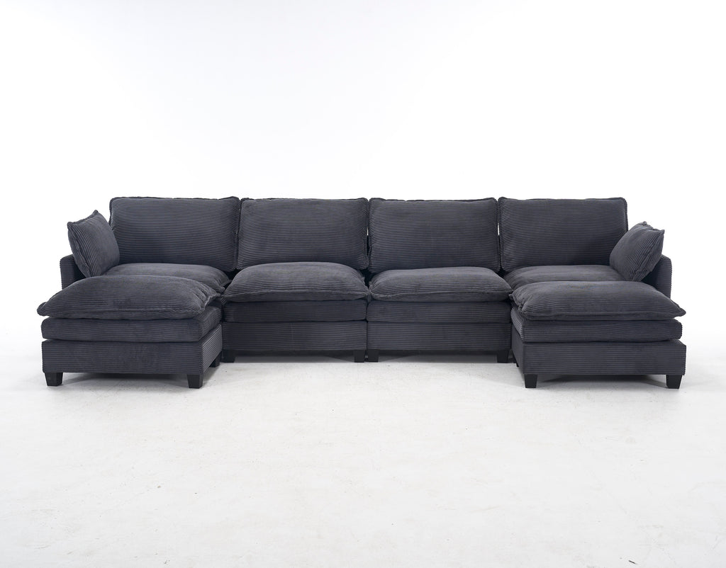 [VIDEO provided][New]Oversized Modular Sofa , Velvet Large U-Shaped Couch Comfy Upholstered 4-Seat Sofa with 2 Ottoman,2 Lumbar Pillow, Deep Seat Couch for Living Room