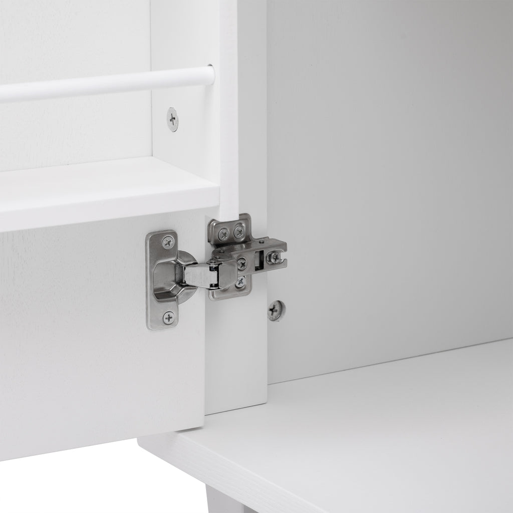 Height-adjustable shelves inside the cabinet doors provide flexibility in accommodating various kitchen items of different sizes.