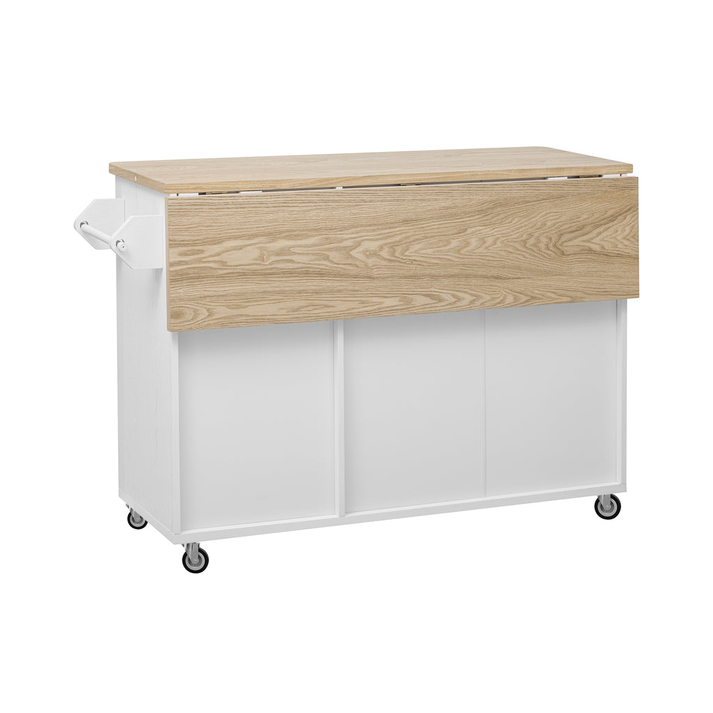- [Large Drop Leaf Design] The portable 46.5' D island features a drop leaf countertop, crafted from 0.98-inch thick premium MDF+Ash veneer, serving as an intelligent and efficient solution for compact kitchens or dining areas. The inclusion of the drop leaf table allows for effortless folding when not in use, thereby optimizing the utilization of available space.