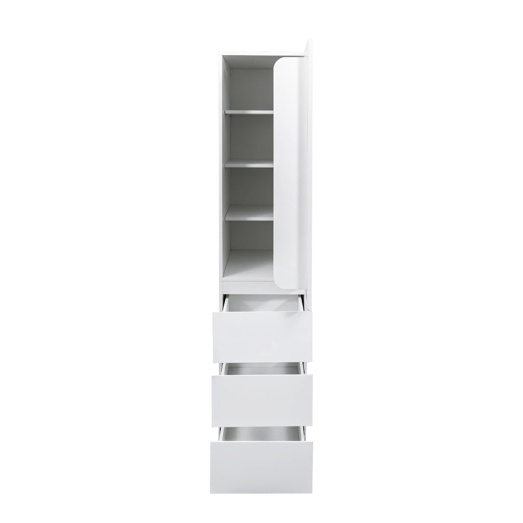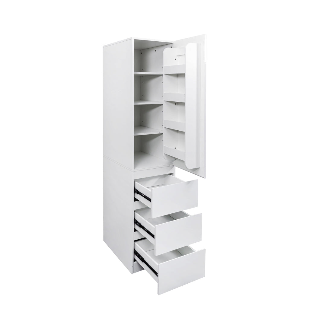 • This pantry cabinet offers ample visible and hidden storage, tidying kitchen clutter. Perfect for kitchen supplies and snacks. Designed for practicality, the cabinet boasts 3 shelves,4 door shelves, and three smooth-gliding drawers for added convenience